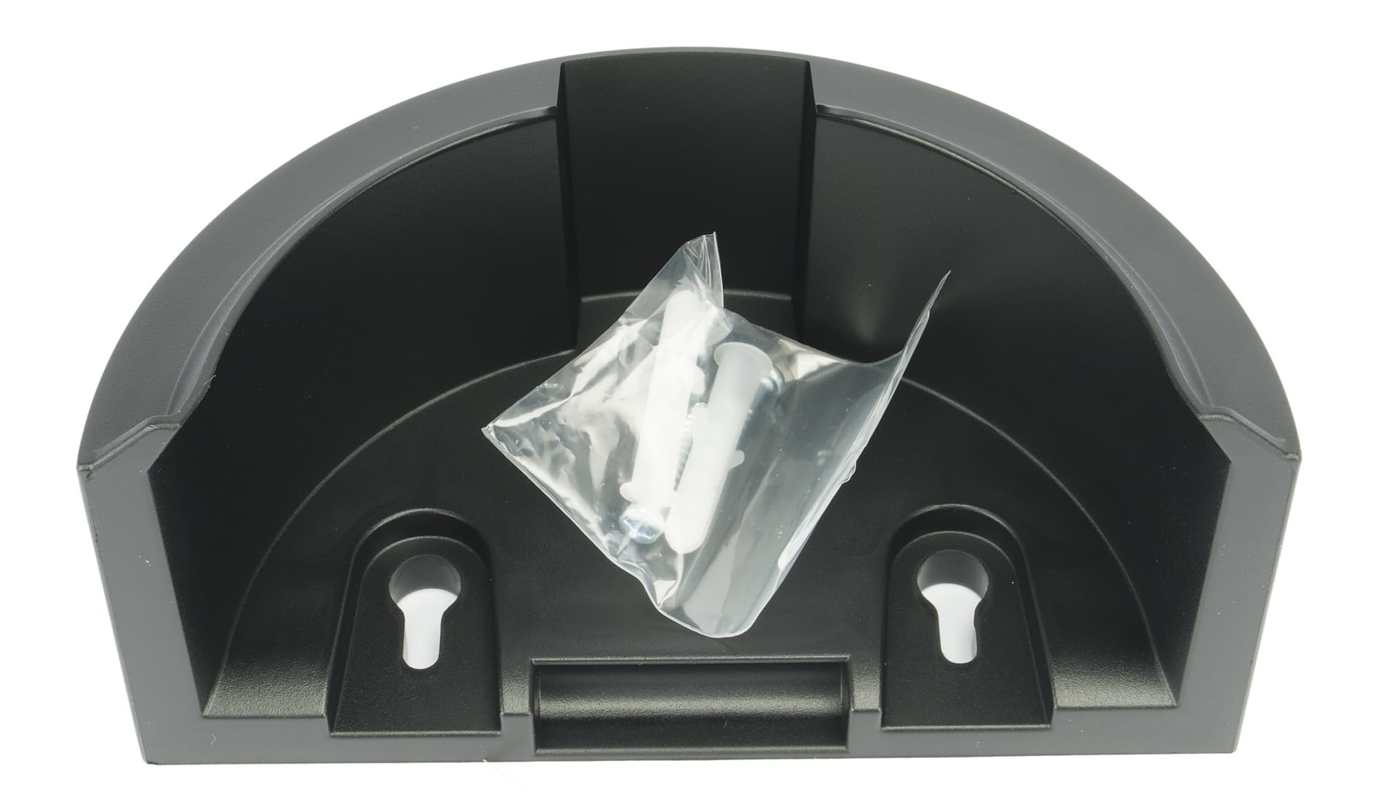 Входящее в комплект несложное крепление позволяет хранить пылесос в сборе. Но у него нет каких-либо мест для насадок — их придется держать отдельно. Не оборудован подвес и контактами: штекер зарядного устройства пользователь должен подключать вручную. В коробке мы обнаружили также набор из двух саморезов и двух нейлоновых дюбелей.