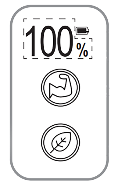 Под цифрами горит символ выбранного режима: минимальной мощности соответствует иконка с изображением зеленого листка, а максимальной — рисунок с мускулистым бицепсом.
