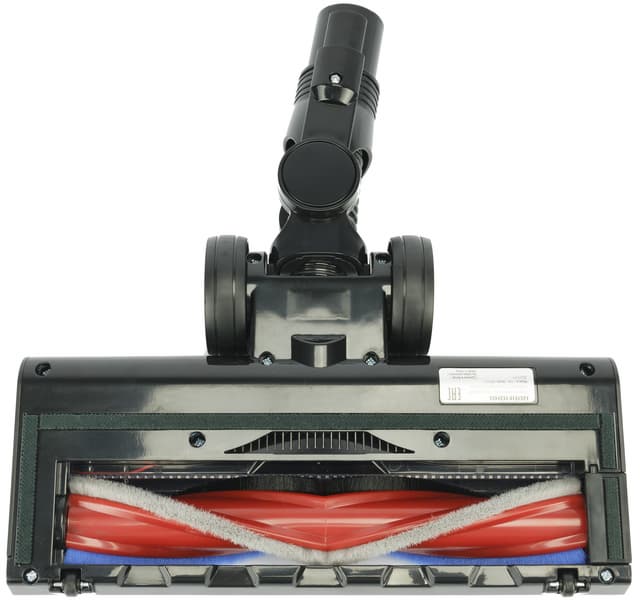 При уборке пола основной вес конструкции приходится на два больших обрезиненных ролика в задней части насадки. Еще два небольших колесика размещены на передней кромке, а лучшее прилегание к поверхности и скольжение обеспечивают мягкие велюровые элементы сзади и по бокам от ротора.