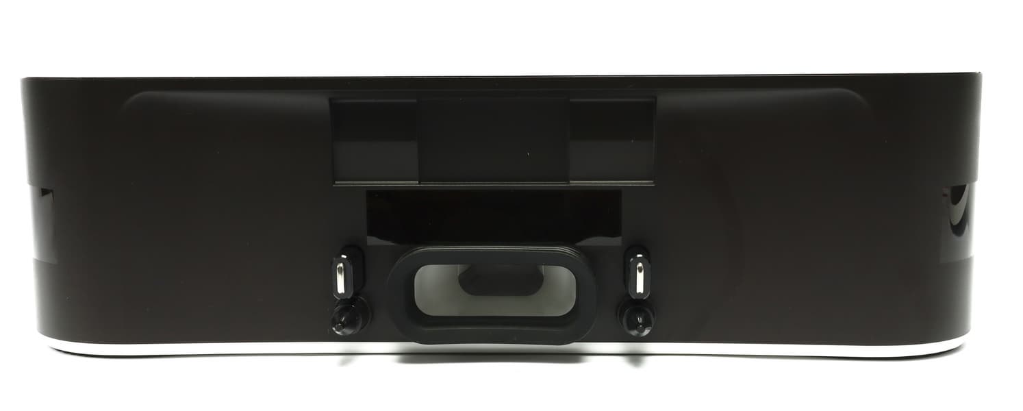 В нижней части станции находятся подпружиненные контакты для зарядки робота,а также резиновый раструб для сброса собранного мусора. Рядом с ними — ИК-датчики, помогающие роботу при парковке робота.