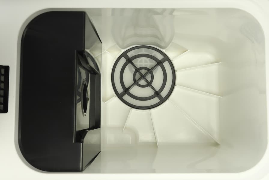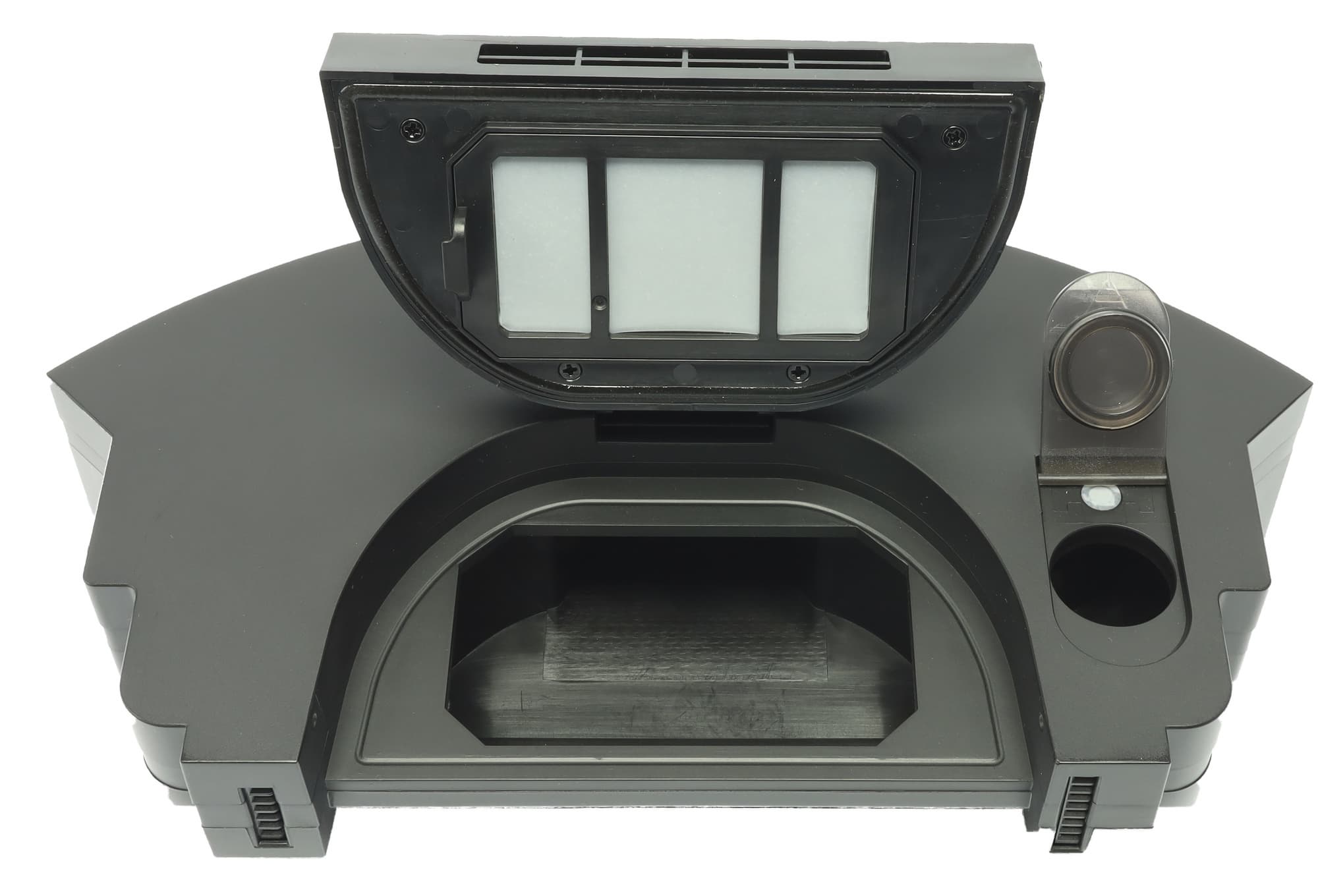 Собранная пыль подается внутрь контейнера, после чего воздух проходит через систему фильтров и выпускается наружу. Модуль можно очистить вручную (для этого в верхней части предусмотрен специальный лючок.