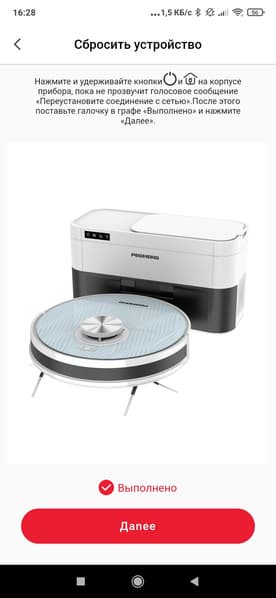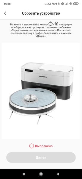Перед началом эксплуатации приложение проверяет актуальность встроенной в пылесос микропрограммы и при наличии обновлений предложит ее обновить.