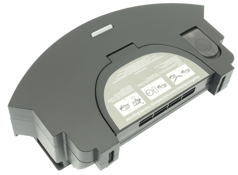 Комбинированный модуль для сухой и влажной уборки расположен в задней части робота. Он, как водится, фиксируется на своем месте с помощью кнопки-защелки.