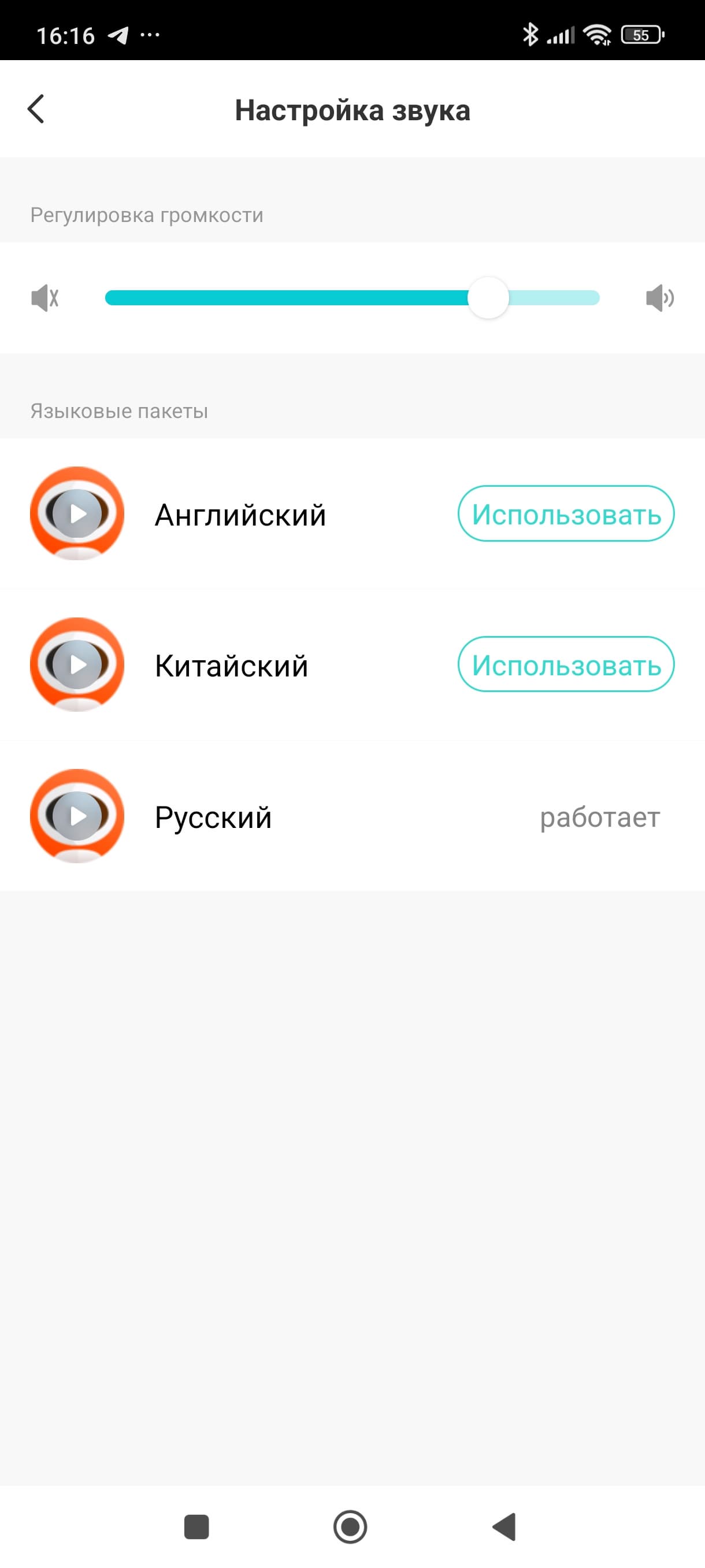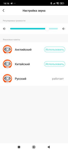 В приложении доступно три голосовых пакета — русскоязычный, англоязычный и китайский. Робот общается с пользователем приятным голосом, без «китайского» акцента и непонятных оборотов.
