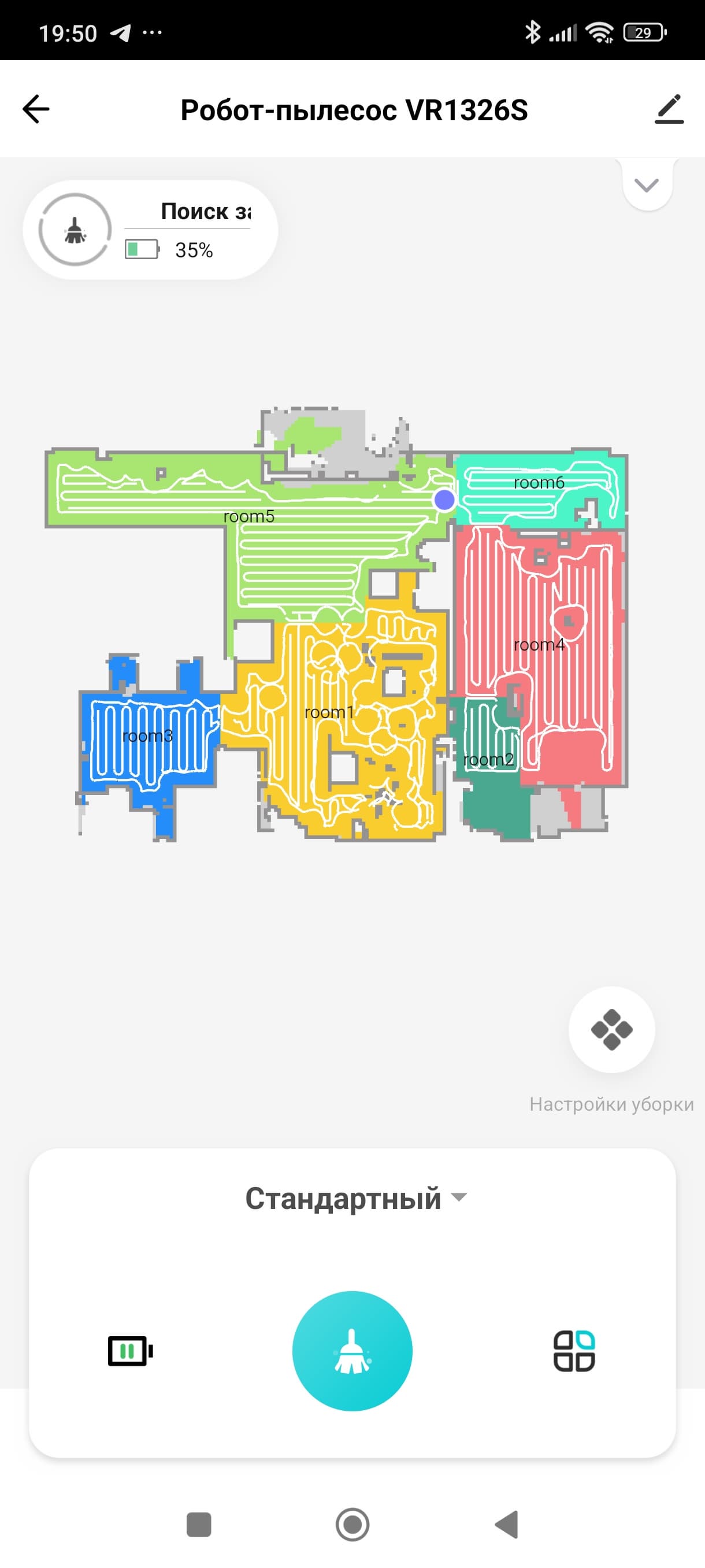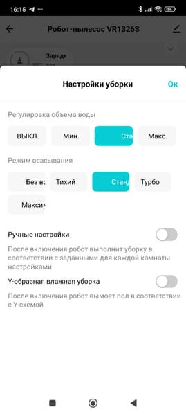После составления карты мы можем выполнить с ней все привычные действия. В том числе — установить собственные режимы (уровень всасывания и увлажнения салфетки) для каждой из комнат.