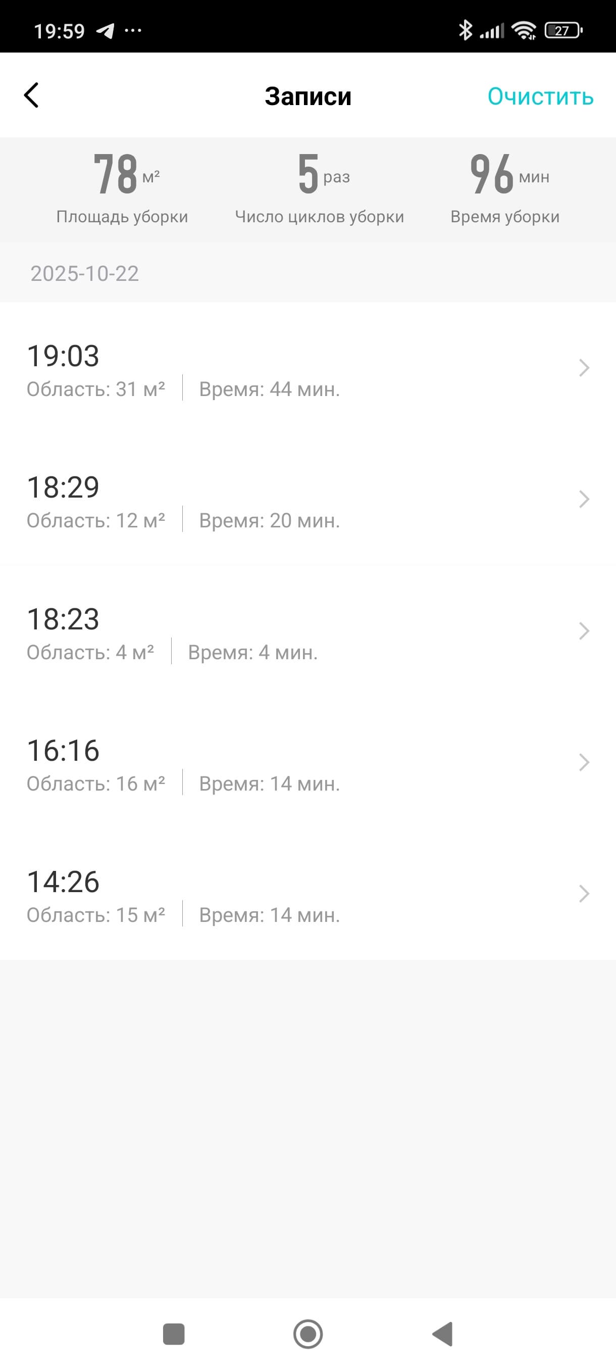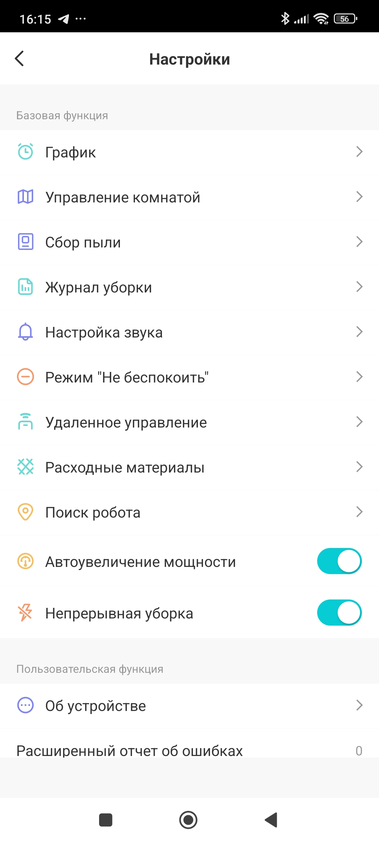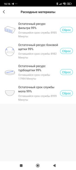 Что еще есть в настройках? Контроль за износом расходников, журнал уборок (в т. ч. по дням недели), запуск уборки по расписанию... в общем, вполне классический набор.