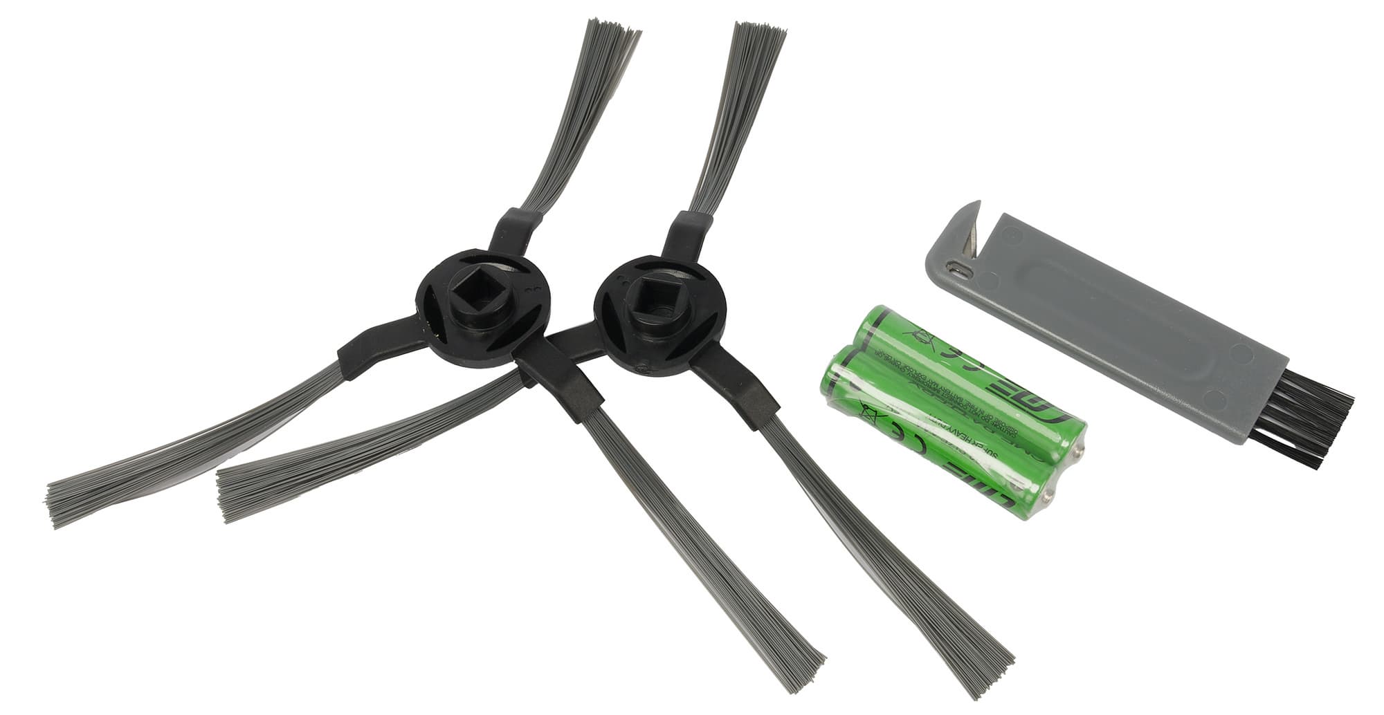 Из дополнительных аксессуаров отметим наличие батареек, запасной боковой щетки и щетки-ножа для очистки устройства.