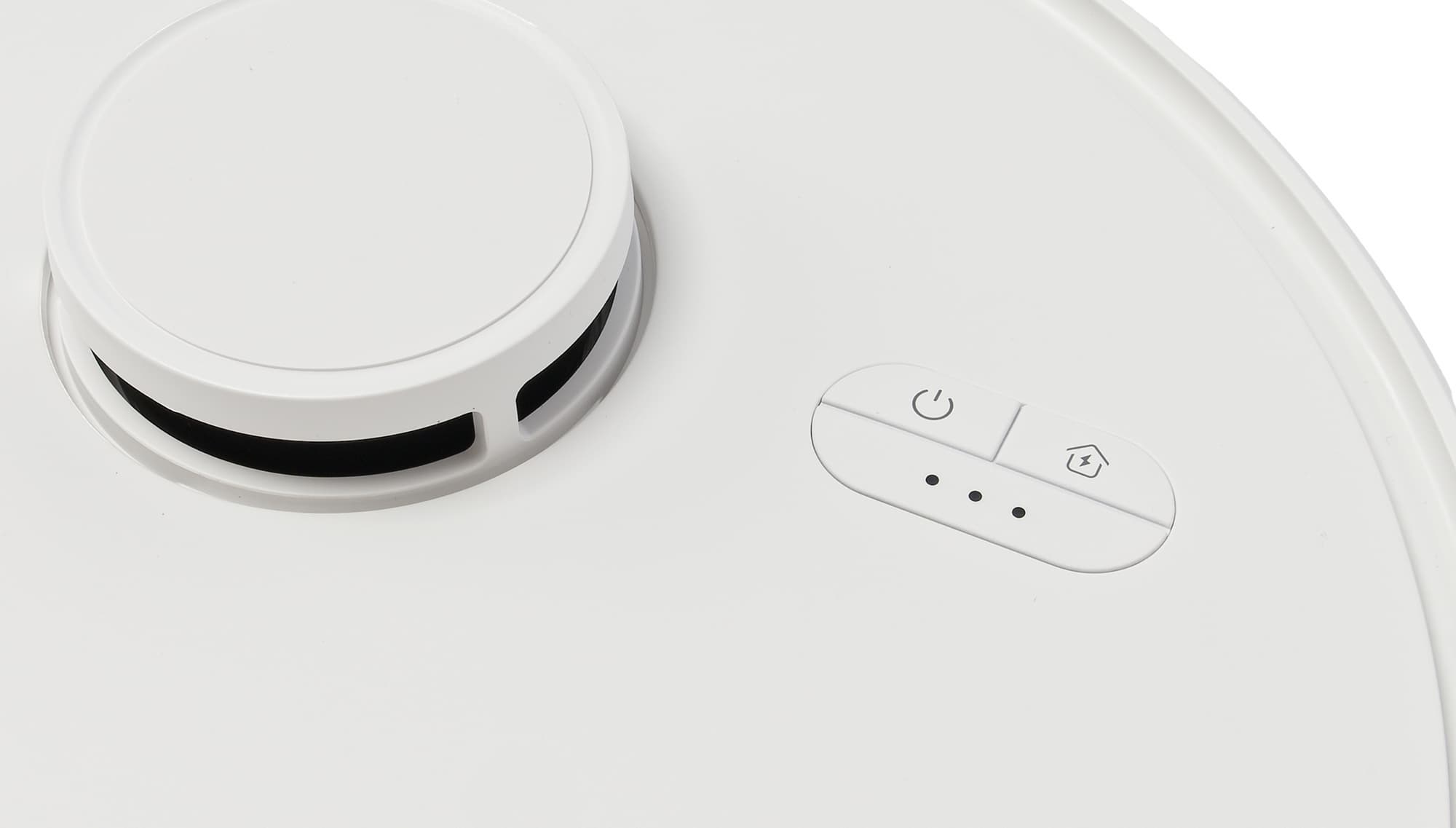 Самый простой способ управлять роботом — это две кнопки со светодиодной подсветкой, расположенные на корпусе устройства. Нажатие на первую включает устройство и запускает уборку в автоматическом режиме, вторая отправляет его на базу для зарядки.