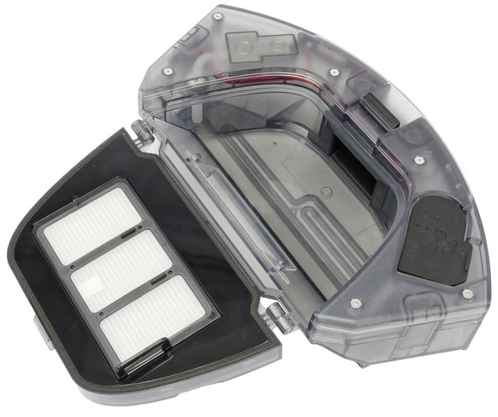 Собранная пыль подается внутрь контейнера, после чего воздух проходит через систему фильтров и выпускается наружу. Чтобы мусор не высыпался наружу, у контейнера предусмотрена откидная пластиковая шторка.