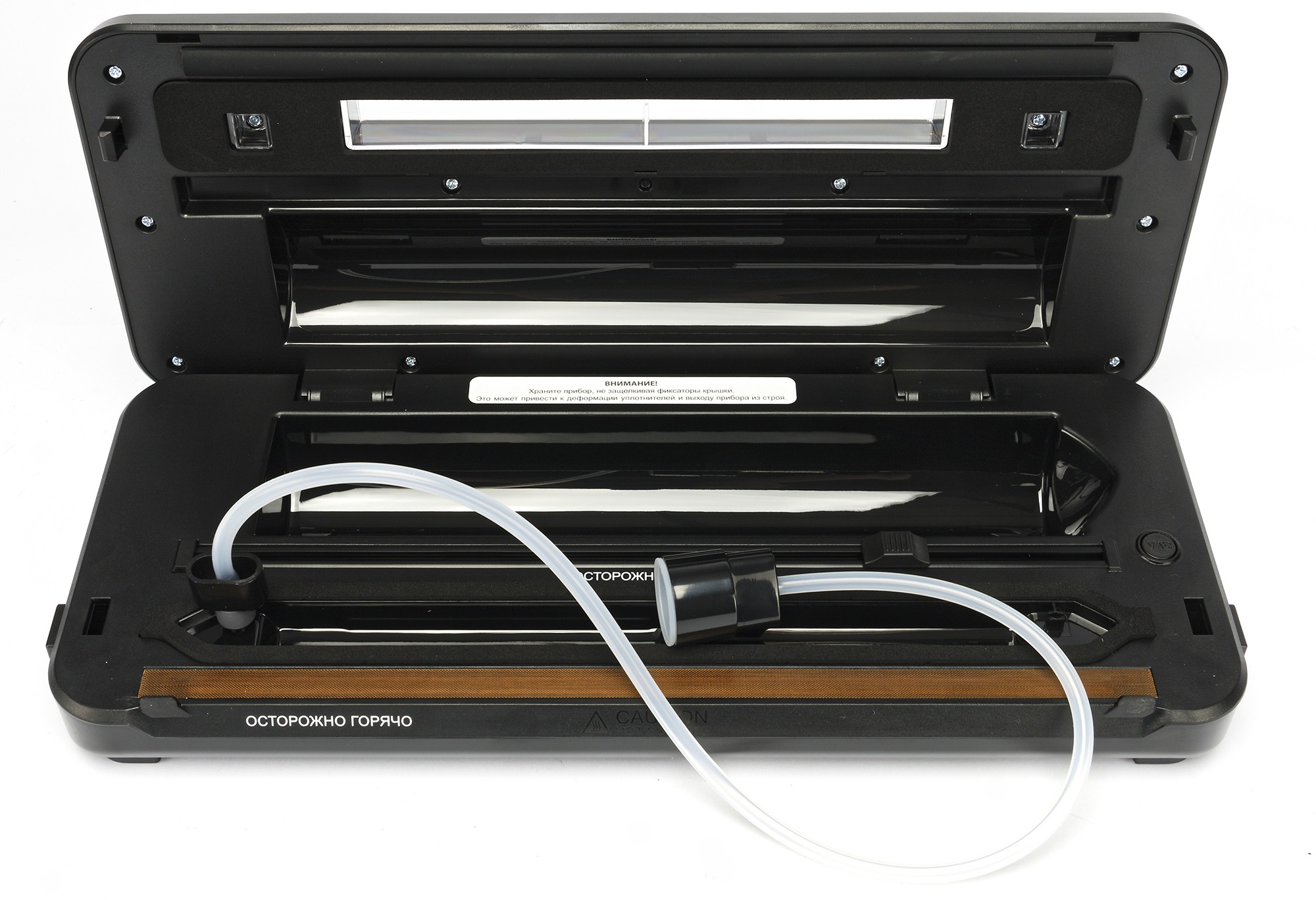 Ваттметр показал максимальное потребление энергии во время работы 111 Вт. Шум, издаваемый прибором при вакуумировании, достаточно интенсивен, но слушать его долго не придется — процесс вакуумации не занимает больше 10-20 секунд.