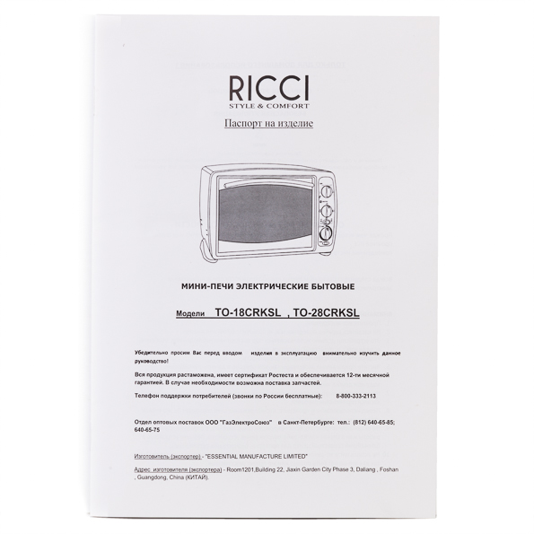 Инструкция к мини-печи Ricci TO-28CRKSL составлена полностью на русском языке. Помимо технических характеристик, описания мер предосторожности и способов ухода за прибором, она содержит подробные указания по работе с каждым режимом. Единственная схема, посвященная установке вертела в печь, оказалась слишком мелкой. Но этот недостаток компенсирован пошаговыми объяснениями инструкции. Страниц в инструкции всего двенадцать, что недвусмысленно должно указывать пользователю на то, что справляться с прибором легко и просто. Так оно и оказалось на самом деле.