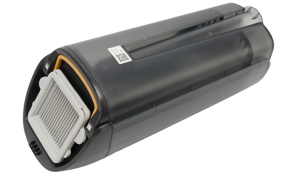 Конструкция резервуара для грязной воды позволяет продолжать работу в горизонтальном положении без срабатывания датчиков переполнения, а S-образная форма тракта не позволяет жидкости и мусору попасть на фильтр тонкой очистки.