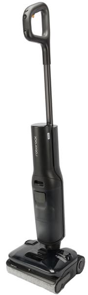 Компоновка пылесоса вполне стандартна. В верхней части моторного блока располагаются двигатель и встроенный аккумулятор, в нижней — резервуар для грязной воды и мусора. Бак для чистой воды совмещен с моторной щеткой для пола. На верхнем торце модуля расположен светодиодный дисплей: при работе он «смотрит» на пользователя.