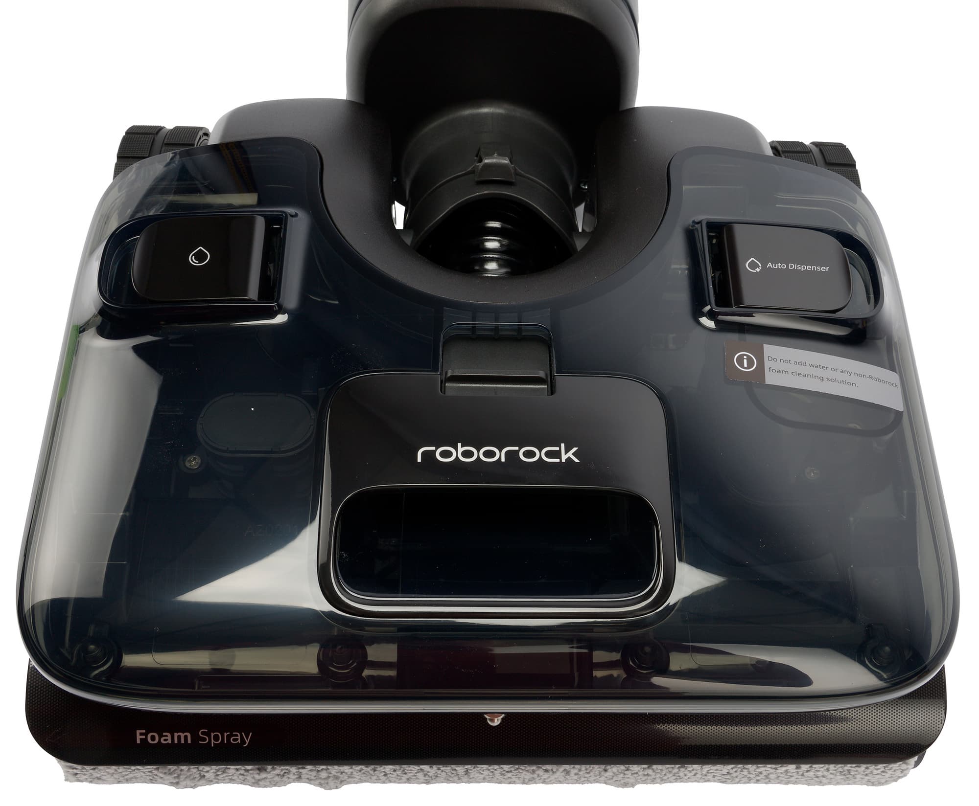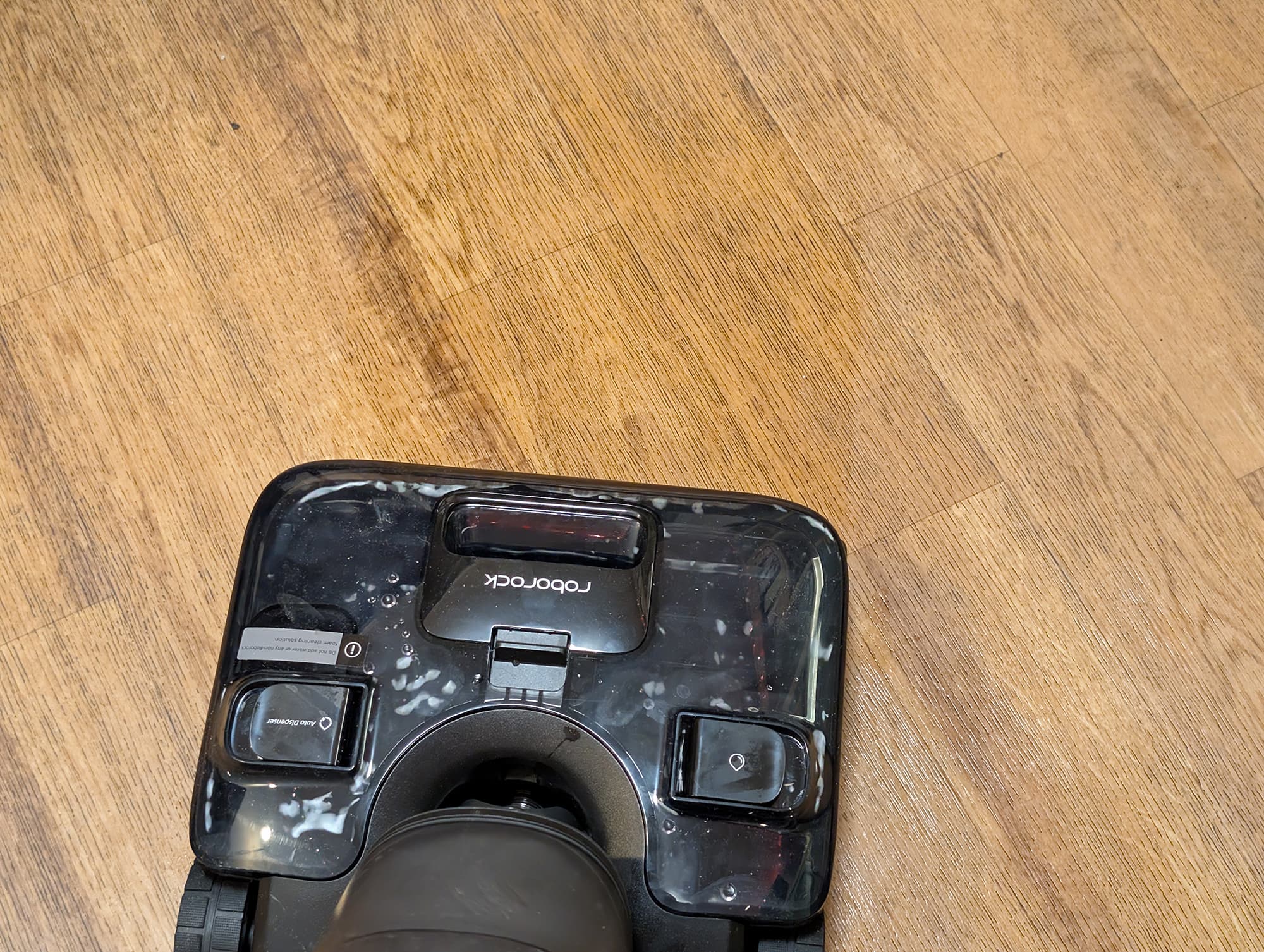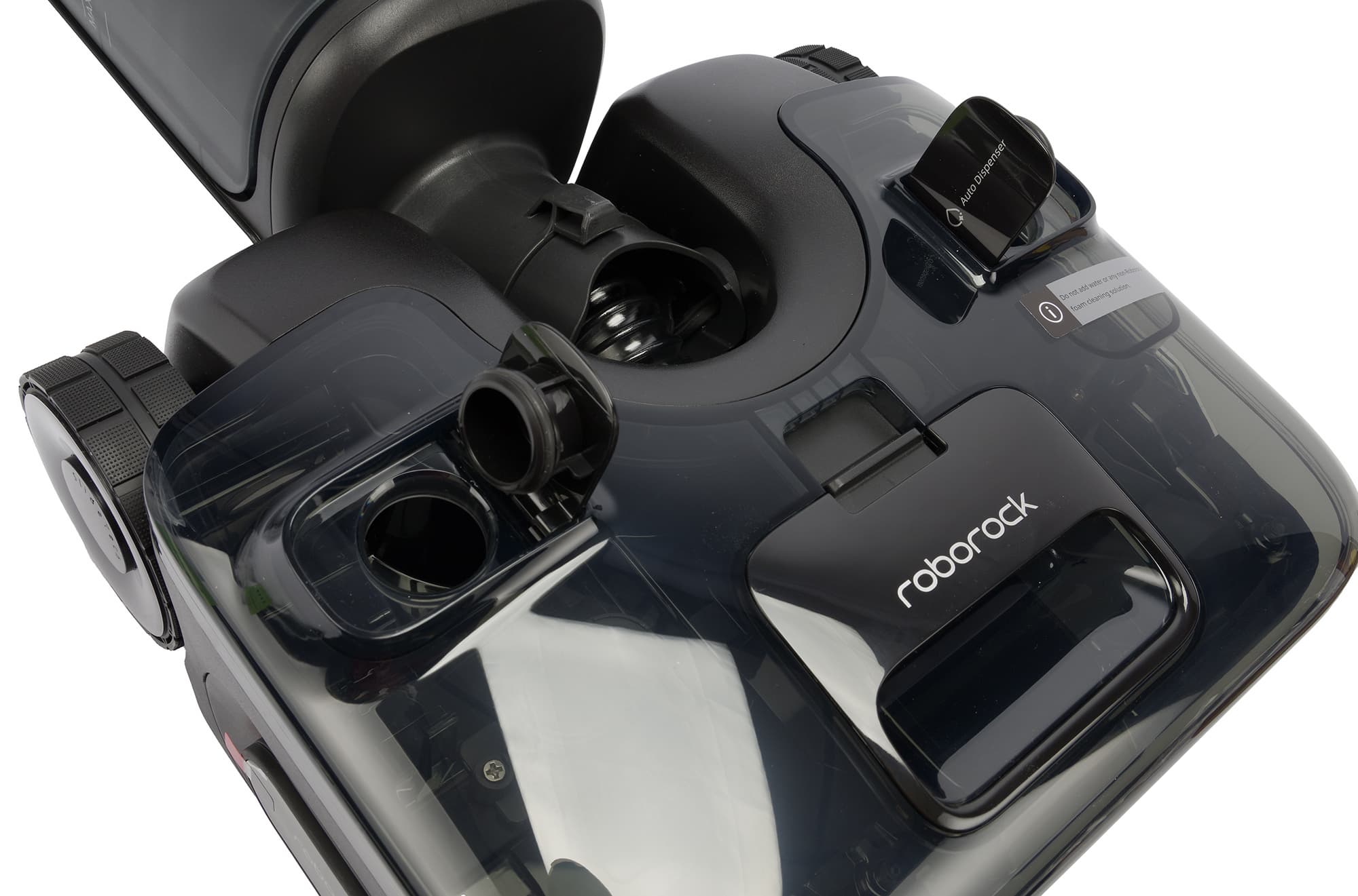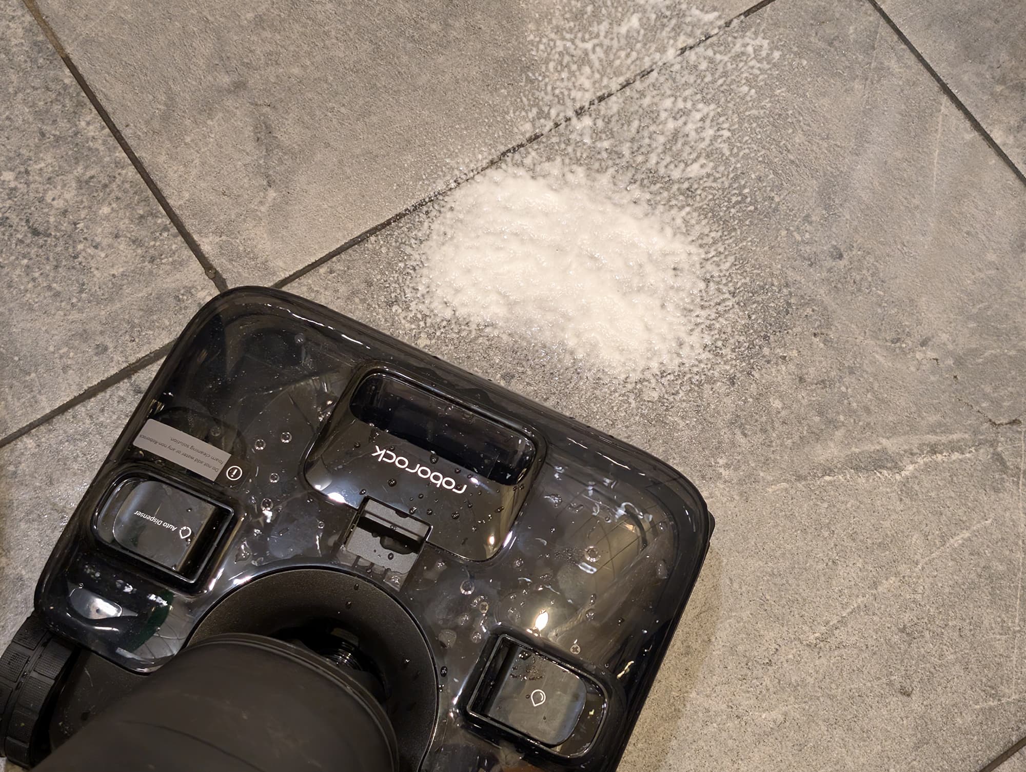 Перед началом работы следует заполнить оба резервуара — водой и чистящим средством. Производитель особо отмечает, что для использования с Roborock F25 ACE Pro подходит только фирменный пенообразующий состав. Полулитровый флакон специальной жидкости входит в комплект устройства.