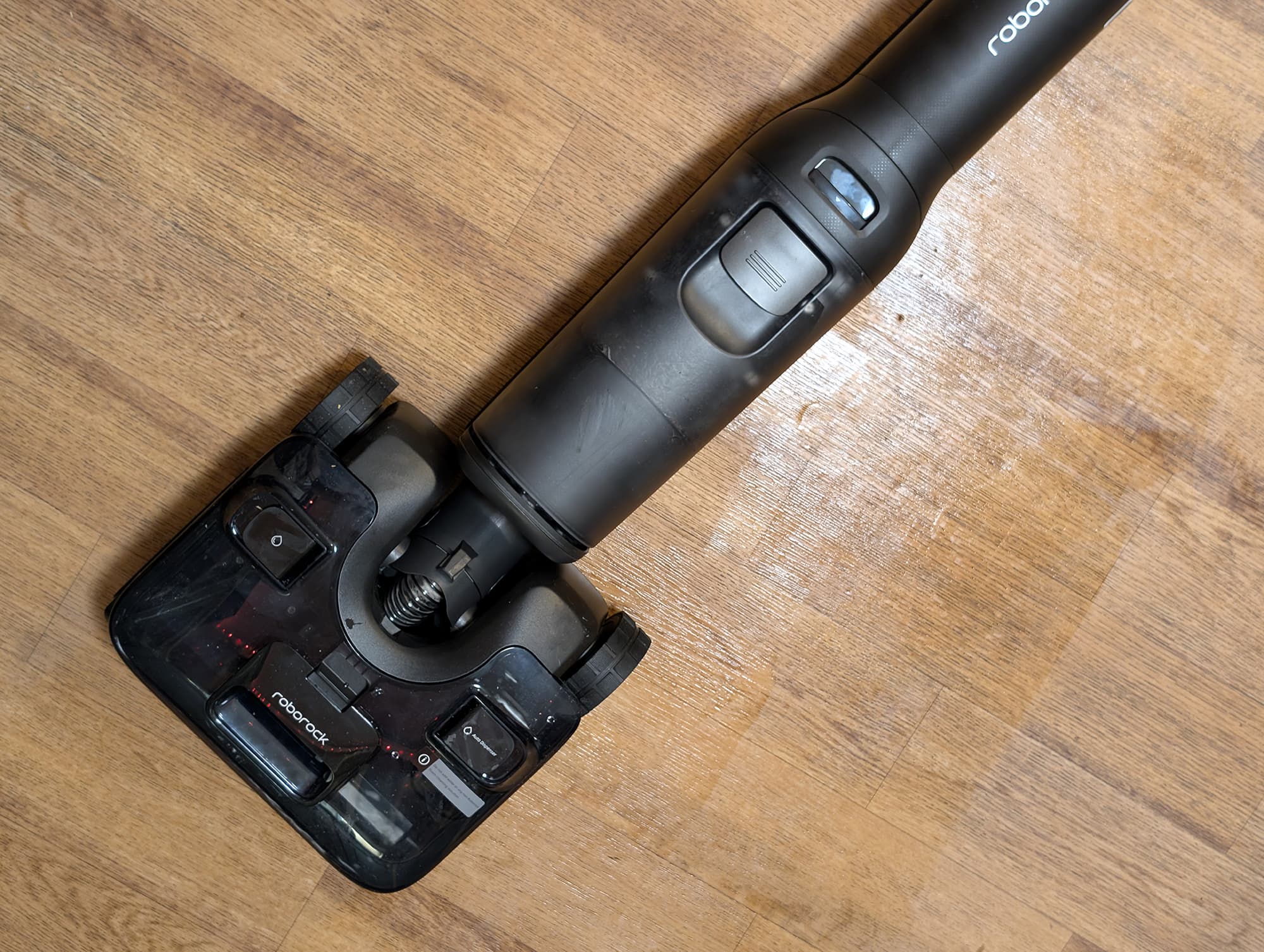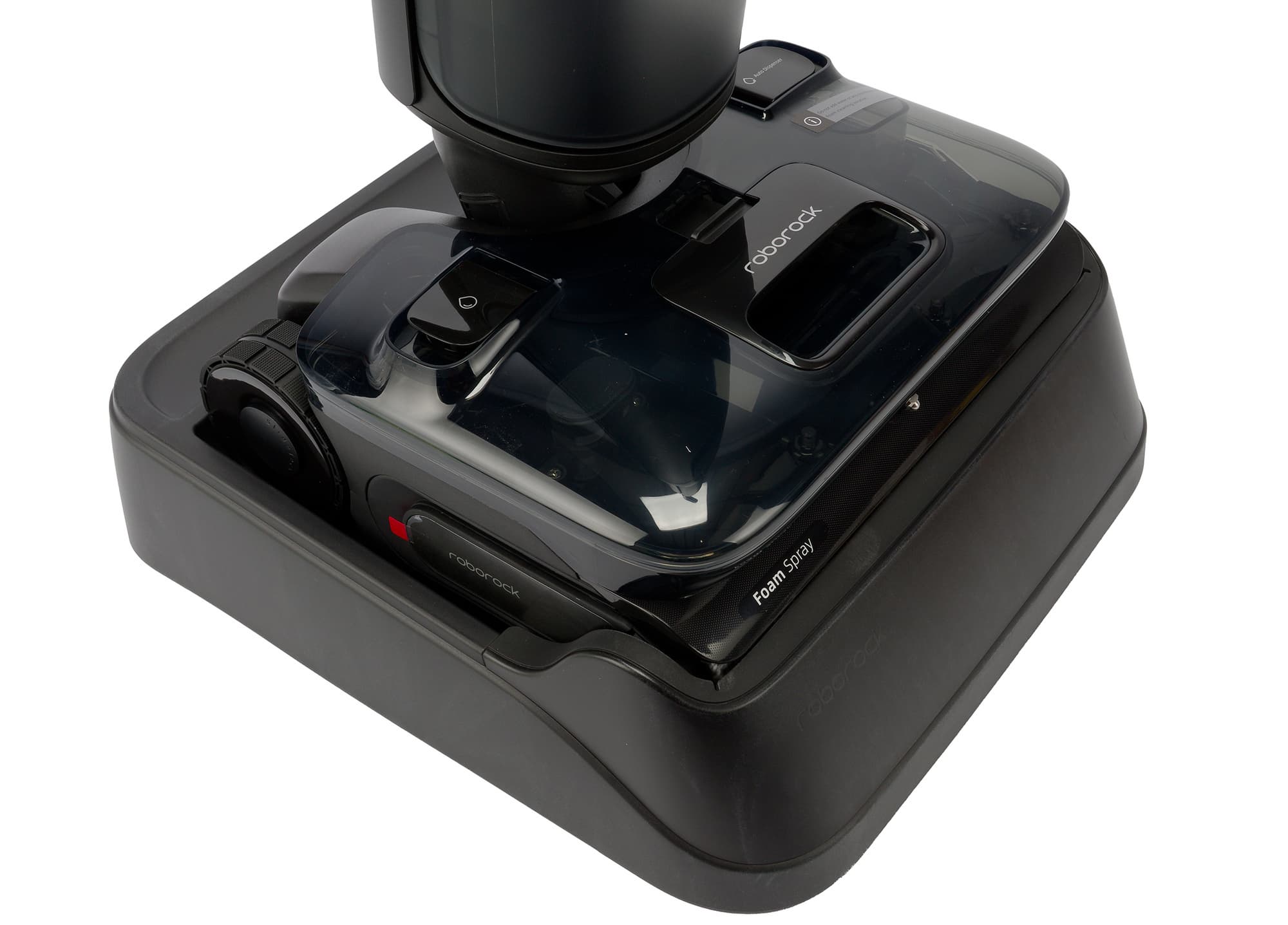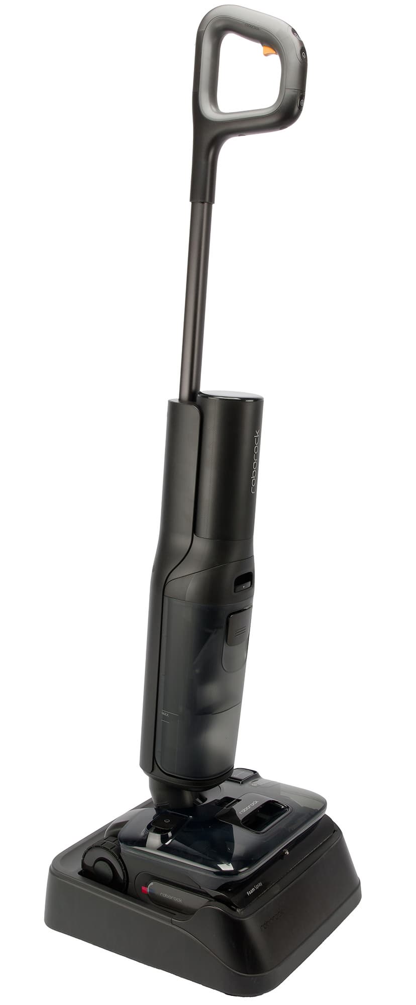 Корпус Roborock F25 ACE Pro сделан из матового пластика, приятного на ощупь. Все компоненты устанавливаются на свои места без затруднений, на покрытии не остается заметных отпечатков пальцев.