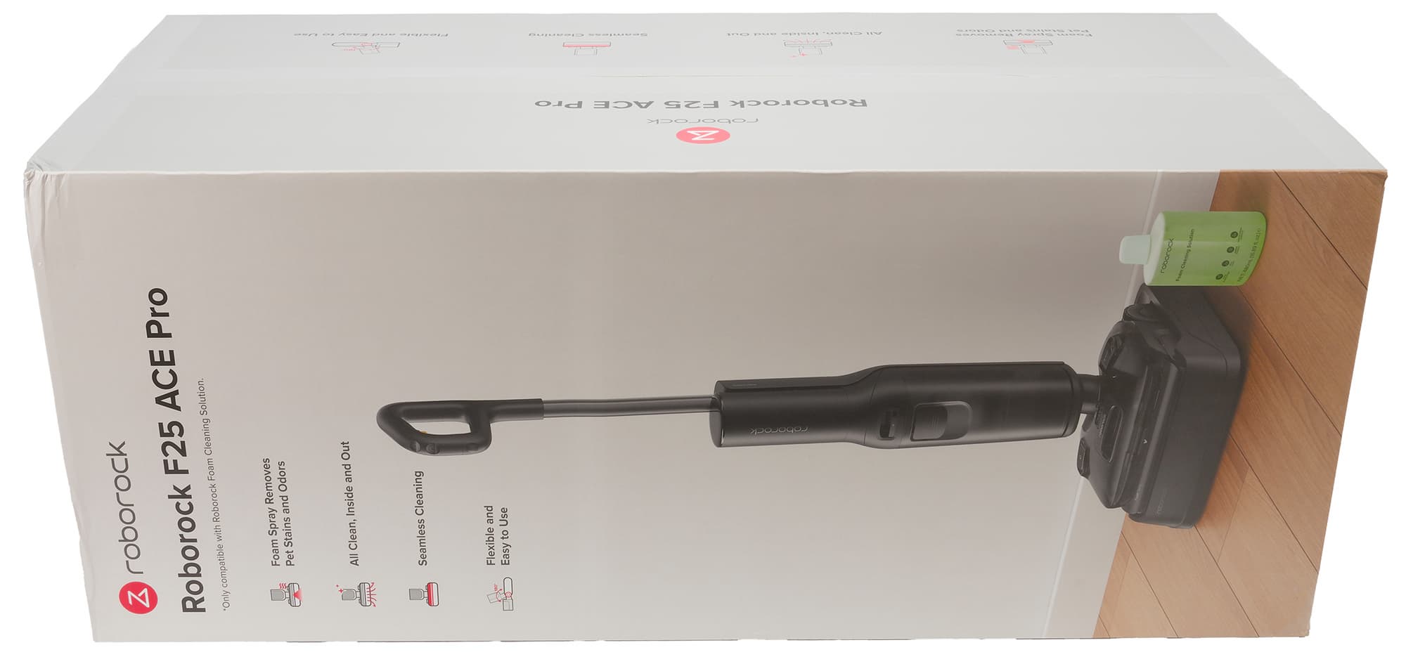 Вертикальный моющий пылесос Roborock F25 ACE Pro — современное высокотехнологичное устройство с большим количеством инновационных решений. Среди них — функция уборки с активной пеной, моторные колеса, облегчающие движение по любым покрытиям, предусмотренная конструкцией возможность работы в горизонтальном положении и даже дистанционное управление уборкой.