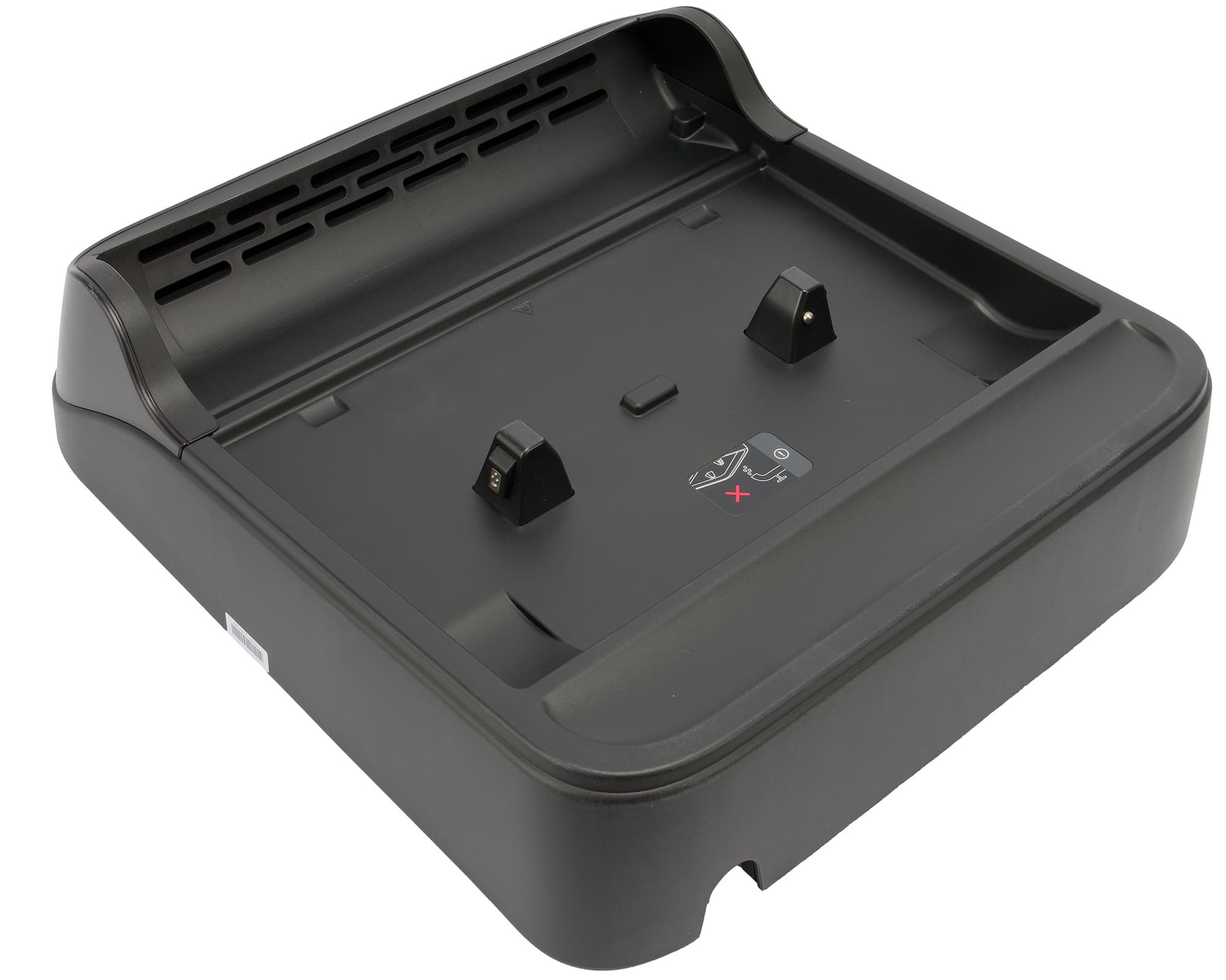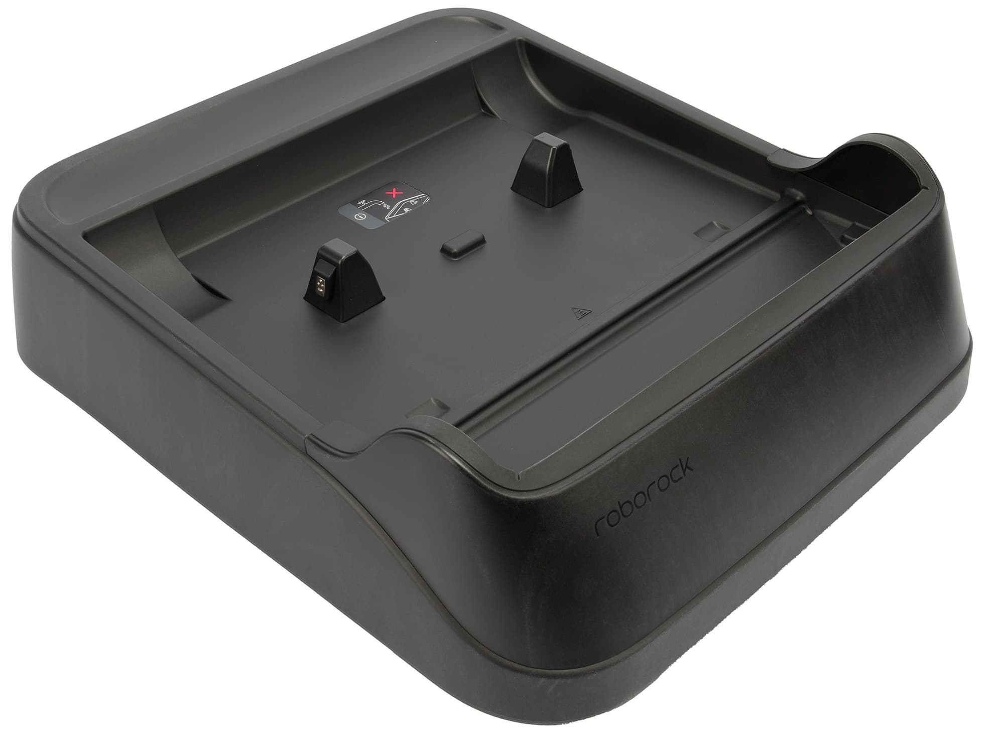 Базовая станция предназначена для зарядки и самоочистки устройства. Для подключения прибора служат подпружиненные электроконтакты, выступающие над поверхностью корпуса.