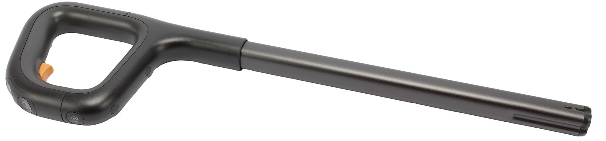 Удлинительная ручка с управляющими кнопками упакована отдельно. Перед началом работы ее следует вставить до щелчка в отверстие моторного блока.