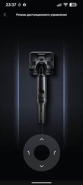 В режиме дистанционного управления приложение предоставляет пользователю виртуальный пульт, позволяющий управлять движениями лежащего на полу прибора: пылесос может двигаться вперед и назад, а также поворачивать вправо или влево. Подача пены в этом режиме не предусмотрена.