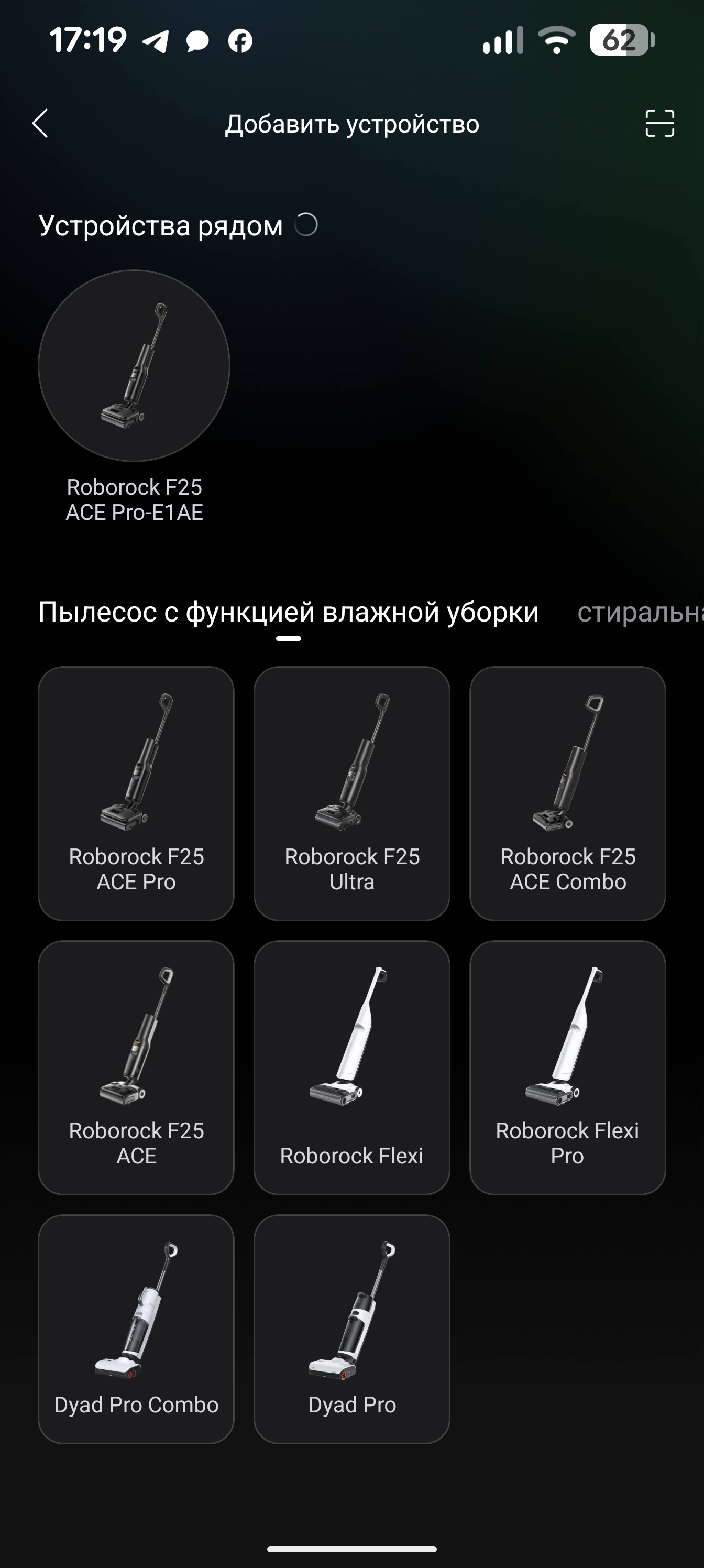 Для использования требуется регистрация. После входа в аккаунт мы можем добавить новое устройство. Сделать это можно двумя способами: отсканировать QR-код на корпусе пылесоса (потребуется доступ к камере и фотографиям) либо вручную выбрать нашу модель из длинного списка поддерживаемых устройств. После этого приложение разъясняет, как активировать режим сопряжения.