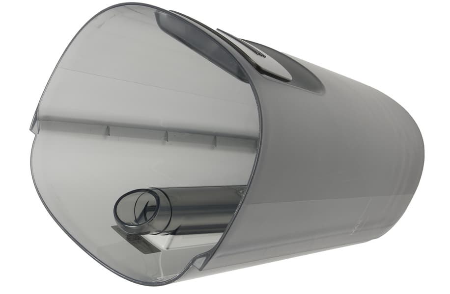 Контейнер сделан из матового полупрозрачного пластика и состоит из трех частей: бака, крышки и моющегося фильтра. Для удобства извлечения у него есть откидная ручка.