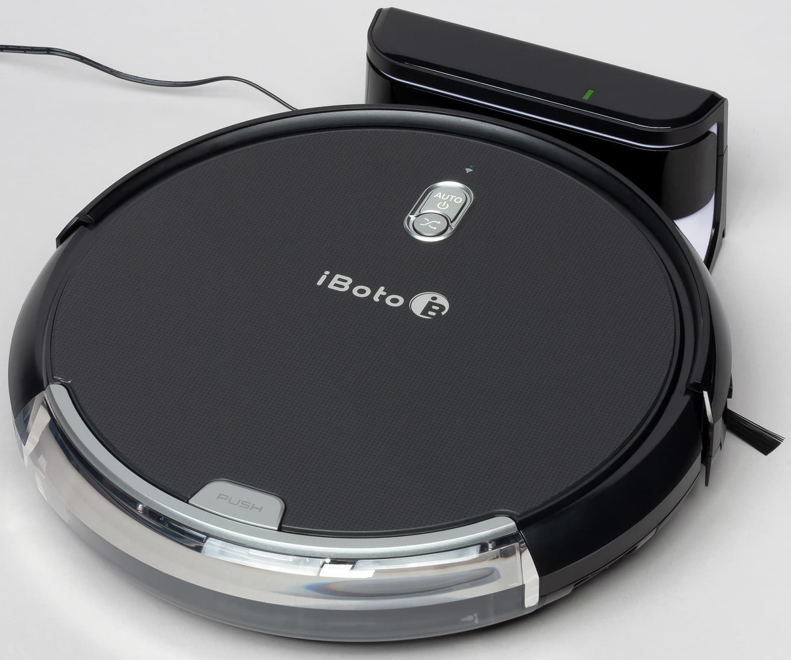 iBoto Smart X320G Aqua отличается от своих сородичей размерами (он маленький), наличием только боковых щеток и верхним доступом к мусорному контейнеру. А еще он умеет мыть полы.