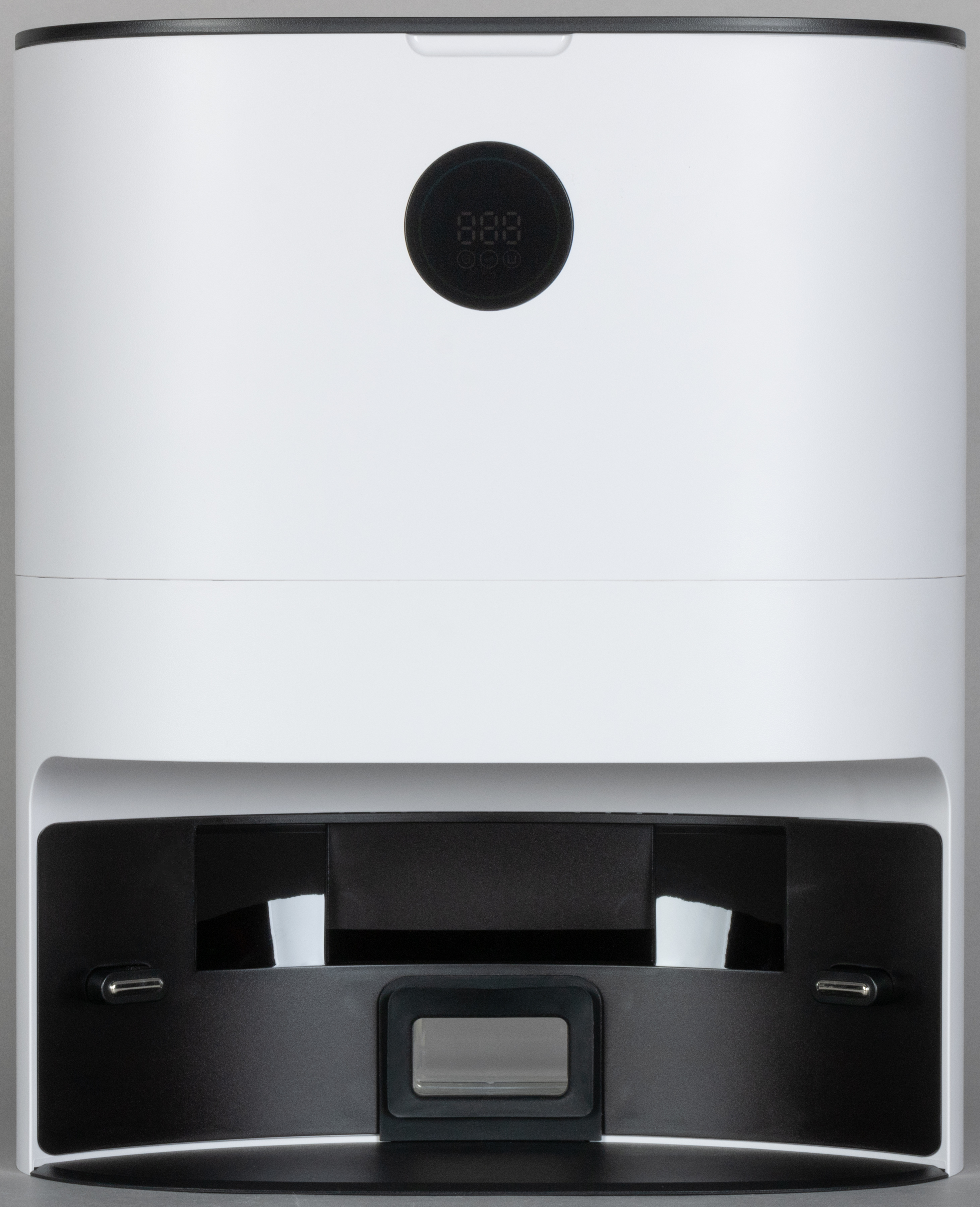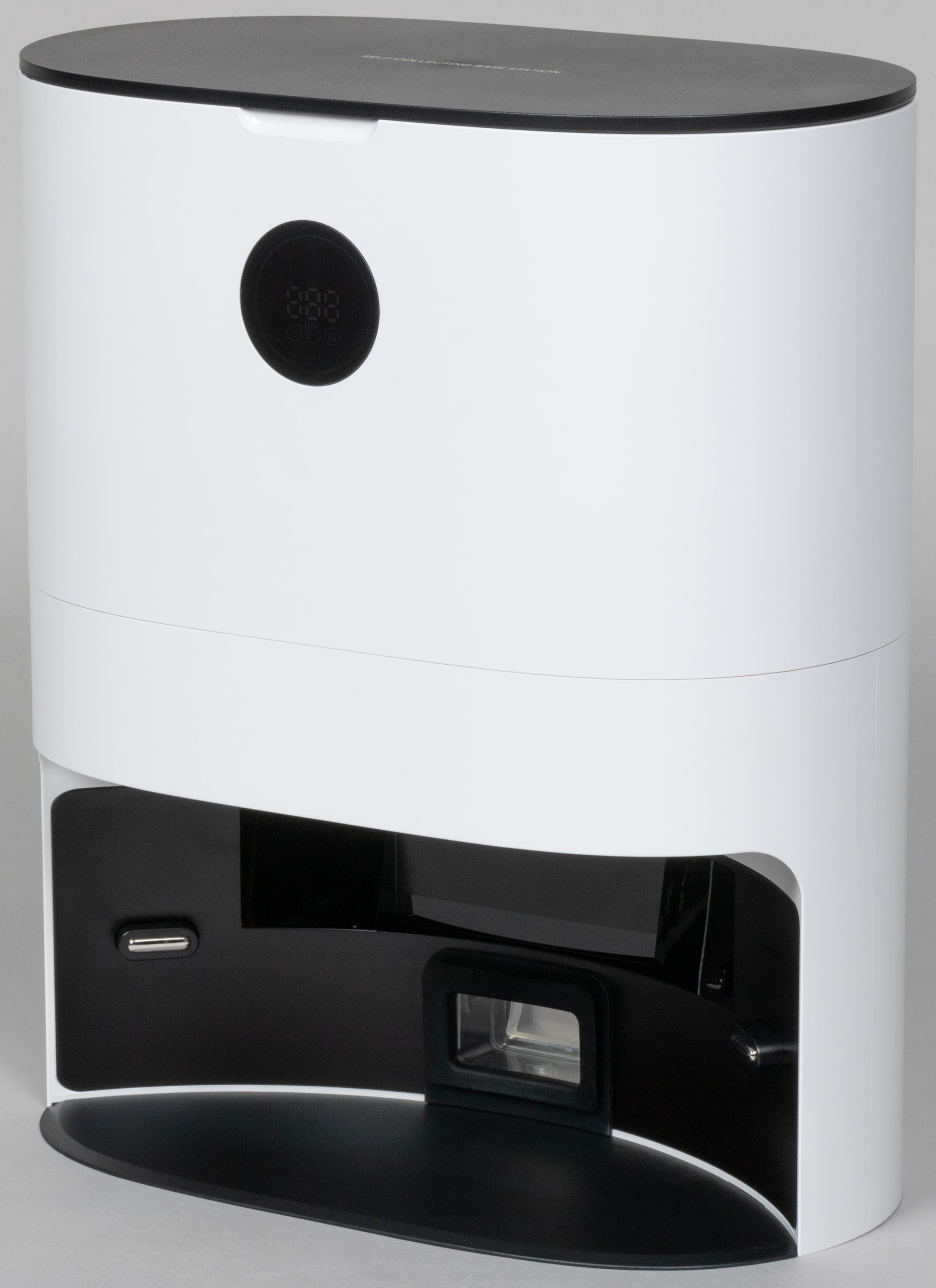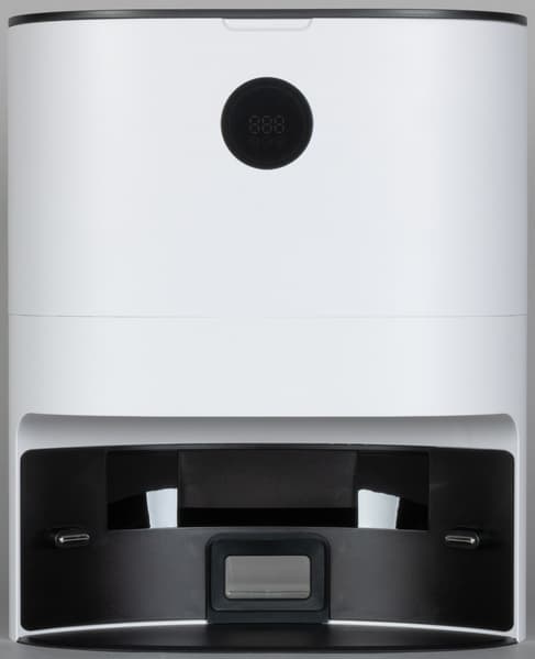 В базовую станцию встроен полноценный ЖК-экран, на котором можно проверить ключевые показатели (заряд АКБ, наличие Wi-Fi-соединения), прочесть коды ошибок и т. п., а нажав на экран, можно запустить сбор пыли.