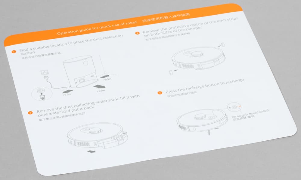 Помимо инструкции в комплекте обнаружилась небольшая «шпаргалка», с помощью которой можно быстро начать работу с пылесосом.