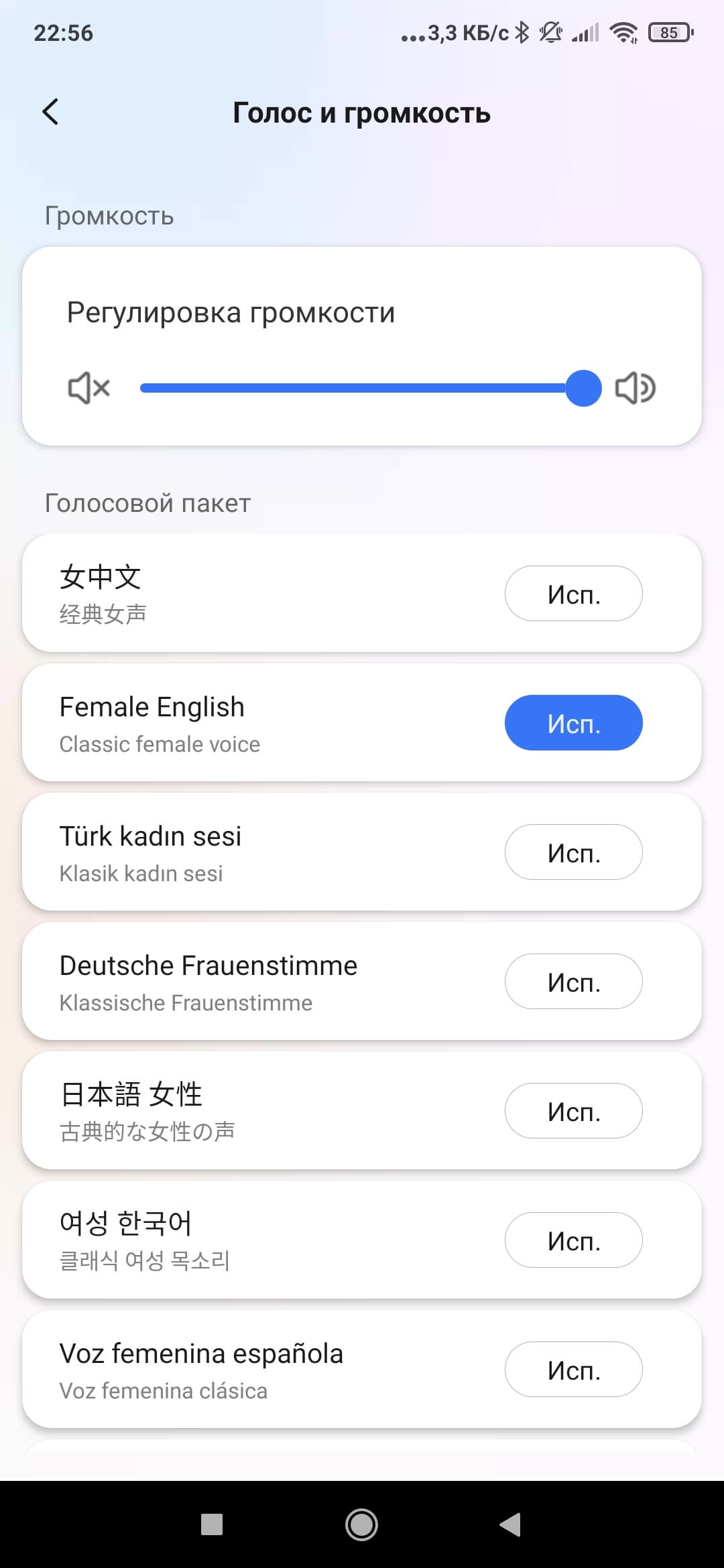 Также пользователь может выбрать подходящий язык, который будет использоваться для голосовых оповещений. В качестве одного из вариантов предлагается русский женский голос, субъективно нами оцененный как приятный и не вызывающий раздражения.
