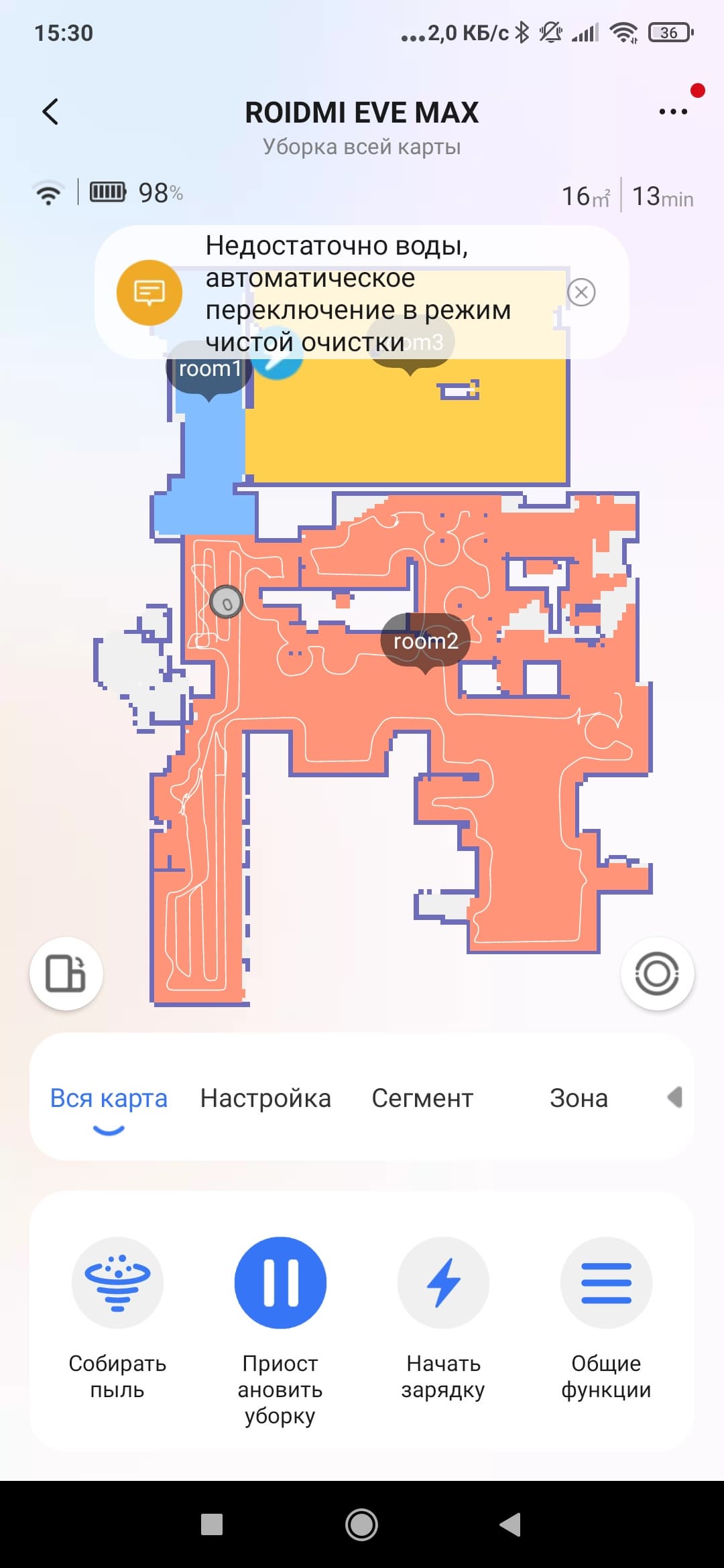 После первоначального составления карты мы сможем настроить последовательность уборки помещений, отметить для уборки лишь некоторые из доступных комнат, расставить запрещенные зоны и виртуальные стены и т. п.