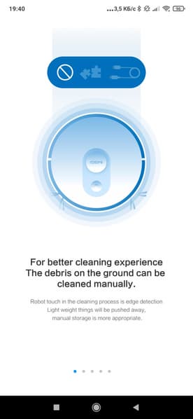 Для управления прибором производитель предлагает свое фирменное приложение Roidmi, доступное для загрузки из маркета или посредством QR-кода, размещенного на корпусе пылесоса. Также допускается управление посредством системы Mi Home, однако, как показывает наш опыт, данный способ в большинстве случаев является второстепенным — ряд функций оказывается недоступным, возникают сложности с подключением и т. п. Поэтому мы воспользовались официальным приложением, которое в полной мере способно раскрыть функциональность пылесоса.