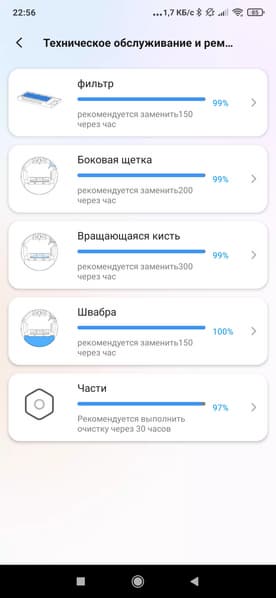 Присутствует контроль за износом расходников — фильтров, щеток и т. п.