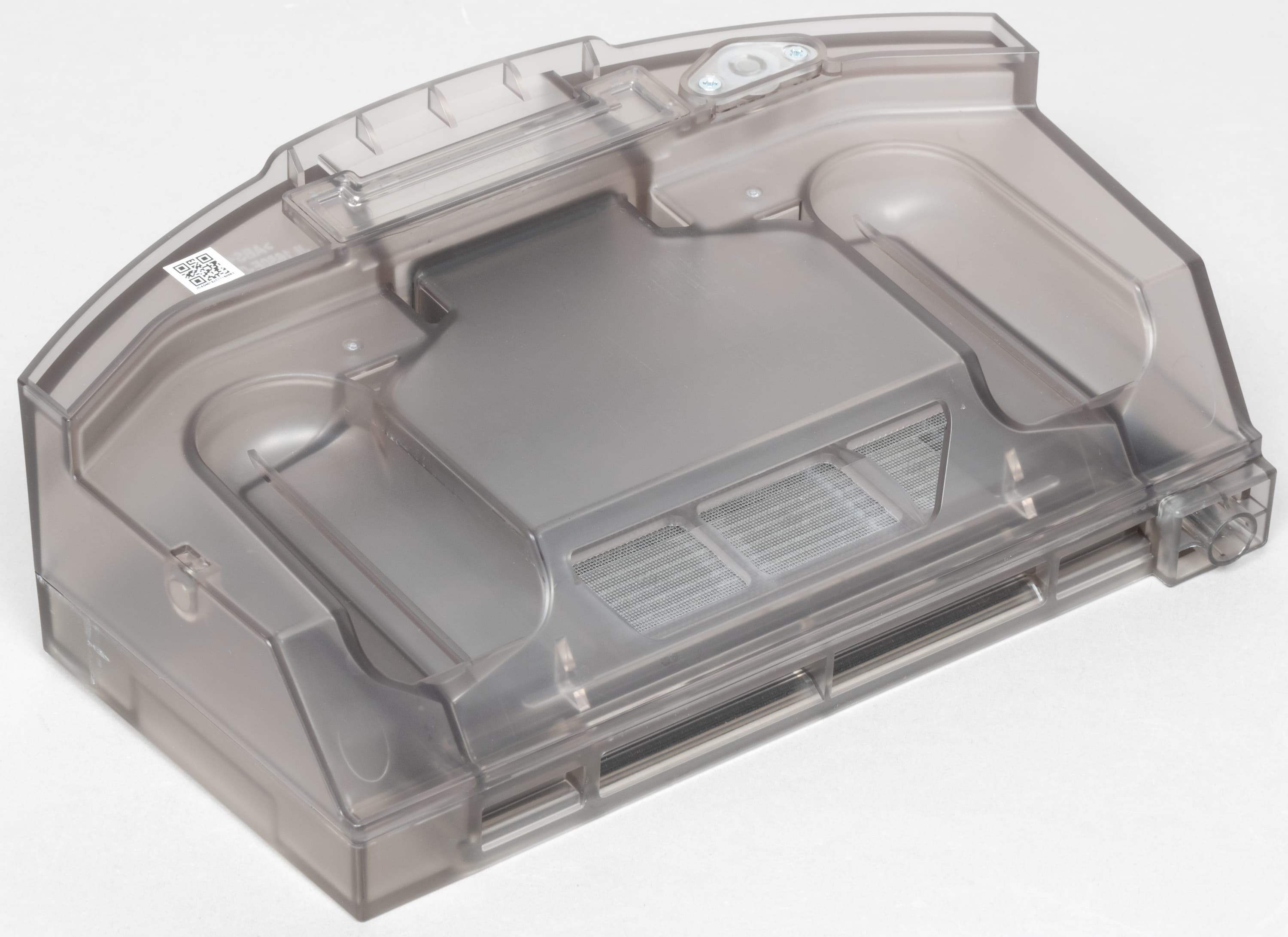 Комбинированный контейнер сделан из затемненного пластика. На крышке — наклейка с краткой инструкцией по подключению робота к мобильному приложению.