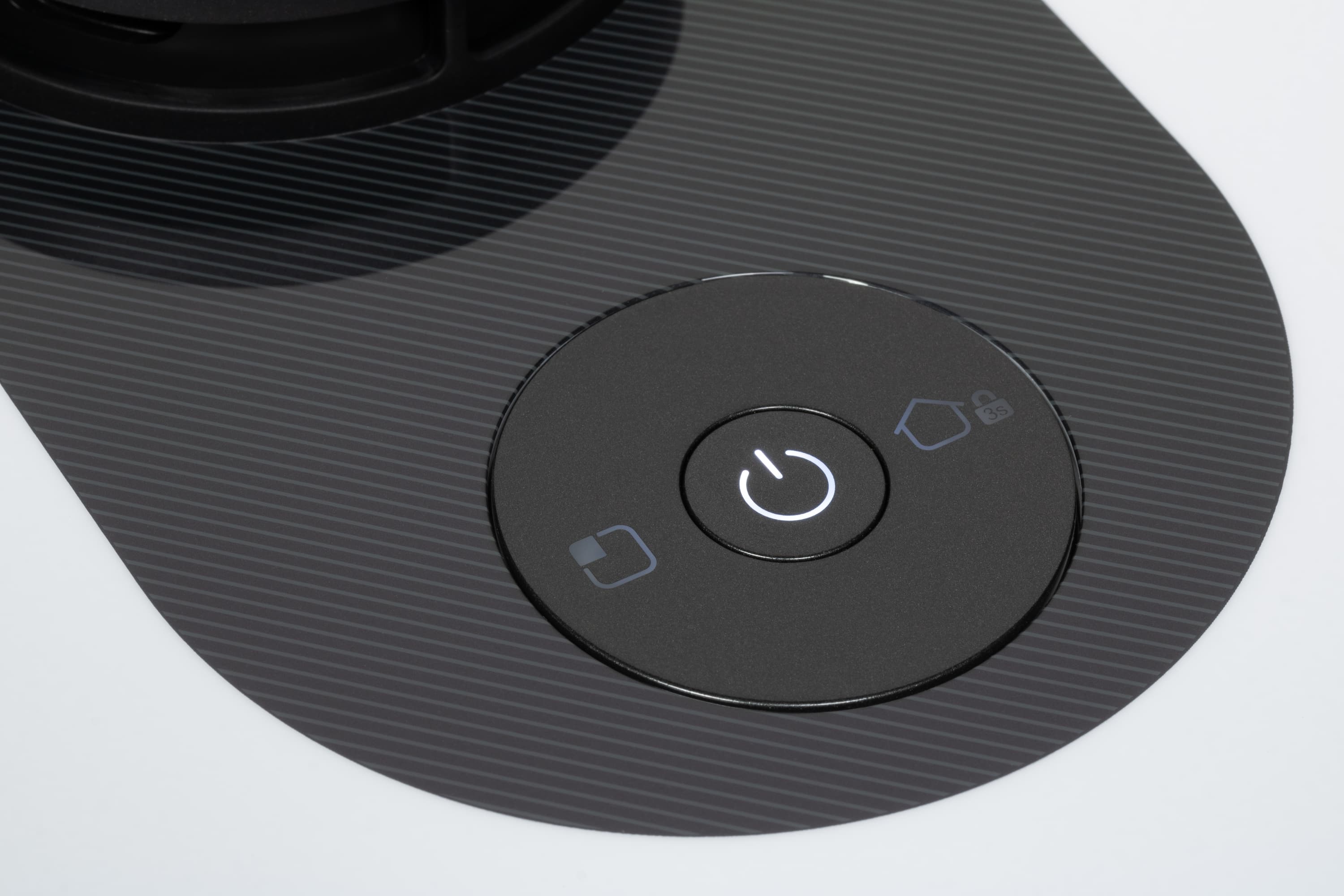 Три кнопки, расположенные на корпусе робота, открывают доступ к базовым функциям — запуску/приостановке локальной уборки, запуску/приостановке режима автоматической уборки (она же при длительном нажатии — кнопка включения/выключения), а также к команде возвращения пылесоса на базу для подзарядки (она же блокирует панель управления при длительном нажатии).