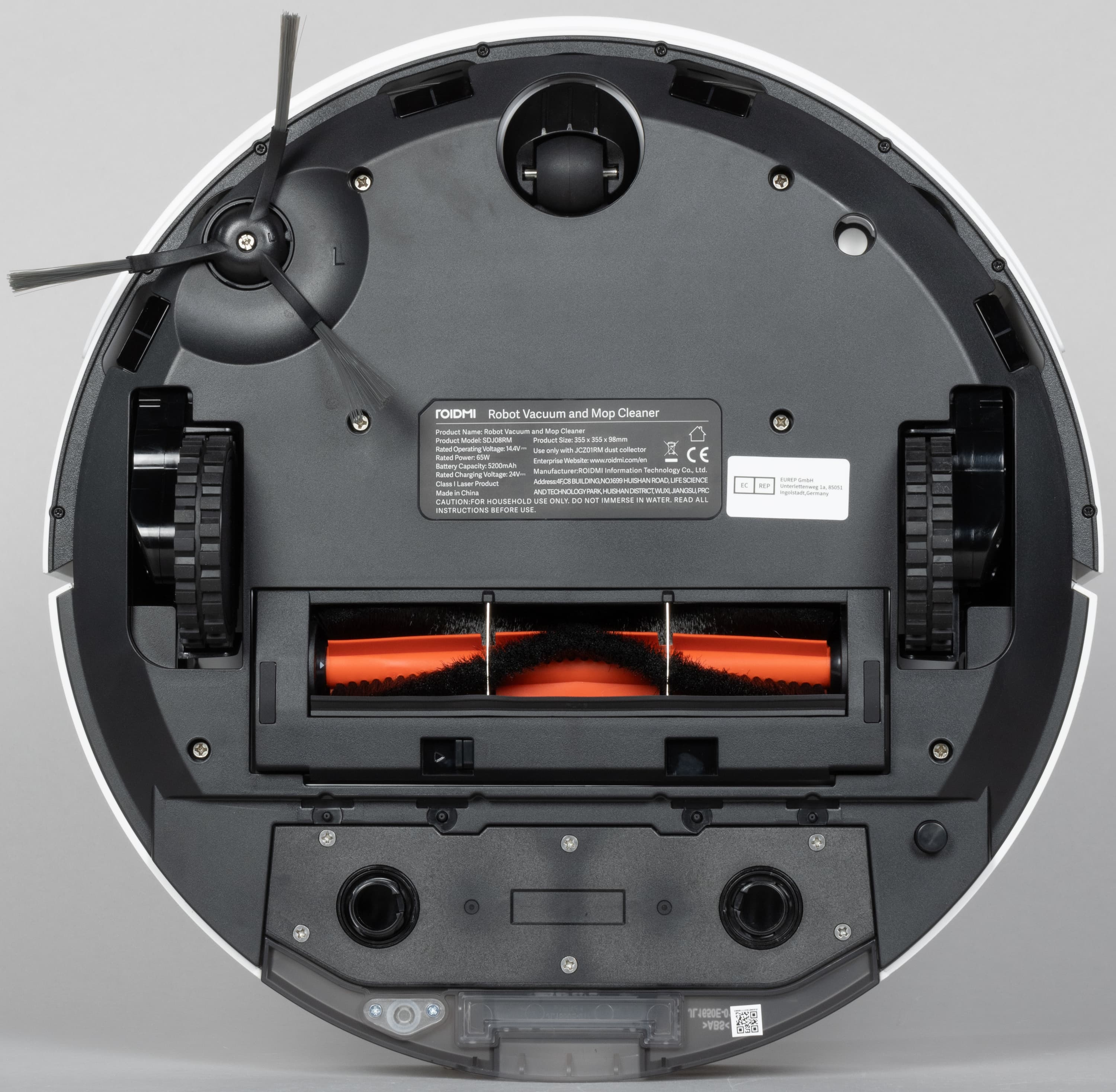 Переместимся на нижнюю сторону устройства. Сразу же отметим наличие четырех датчиков поверхности, а также датчик распознавания ковровых покрытий.