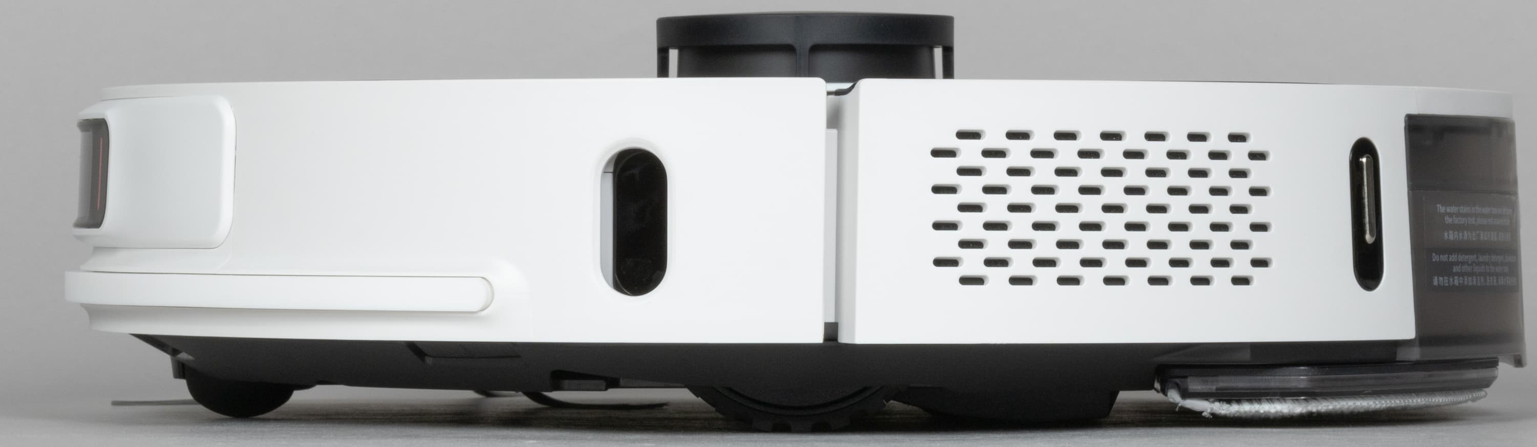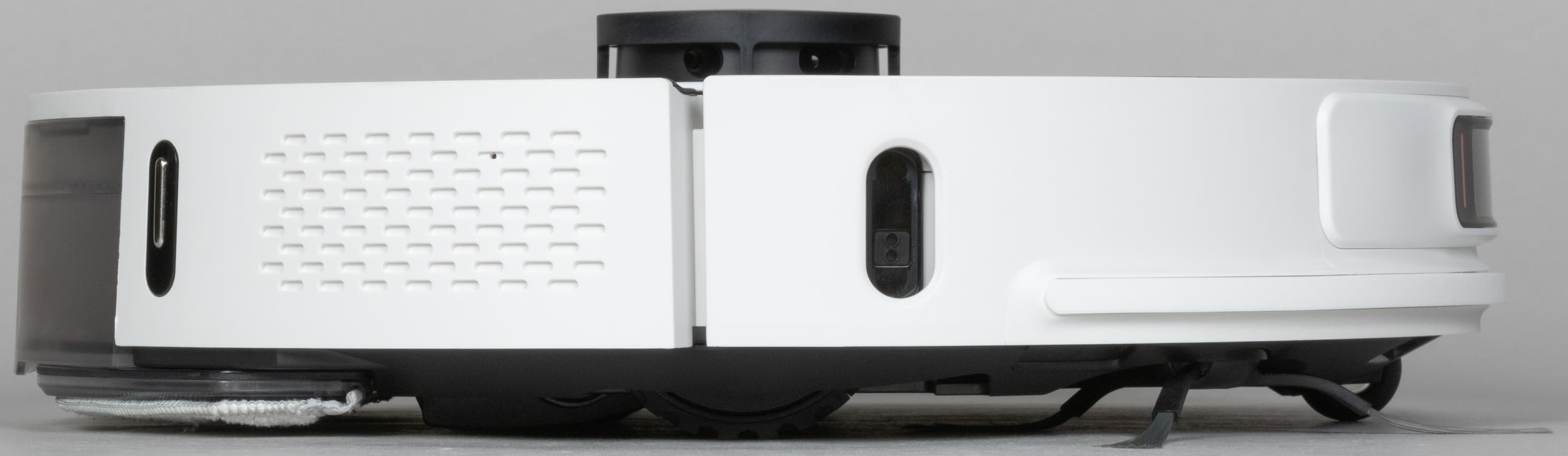 Два дополнительных датчика расположены по бокам робота. Со стороны щетки — датчик для определения расстояния до стены. С противоположной — обычный ИК-датчик и решетка выхода воздуха.