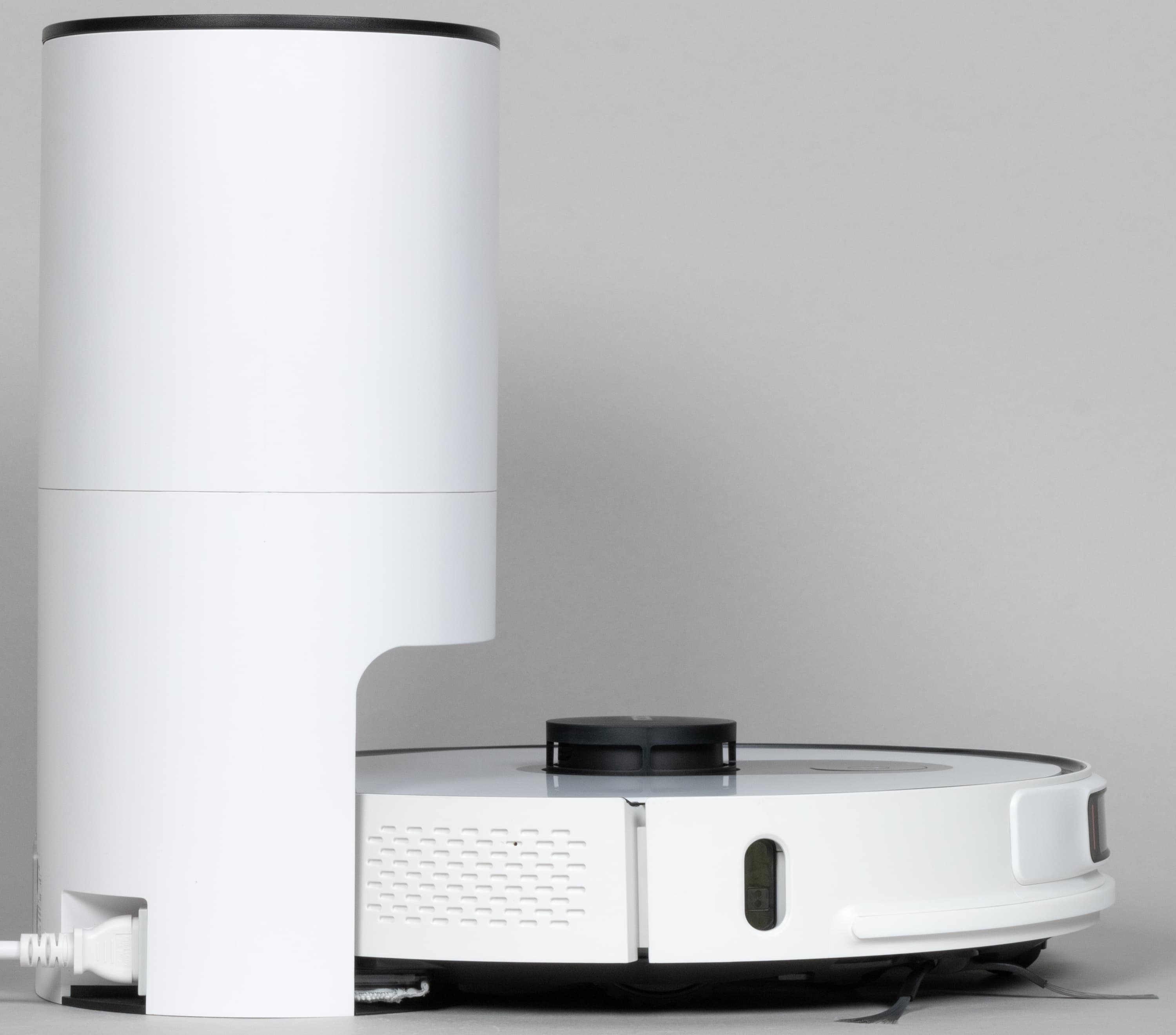 Наконец, скажем и об уровне шума. При том, что сам по себе робот работает довольно тихо (со стандартным для роботов-пылесосов уровнем шума), процесс сброса мусора сопровождается довольно громким звуком высасываемого воздуха. Совершенно точно мы не хотели бы его слышать ночью, а следовательно, вряд ли стоит запускать робота в режиме «со сбросом мусора» в доме, где спят люди.