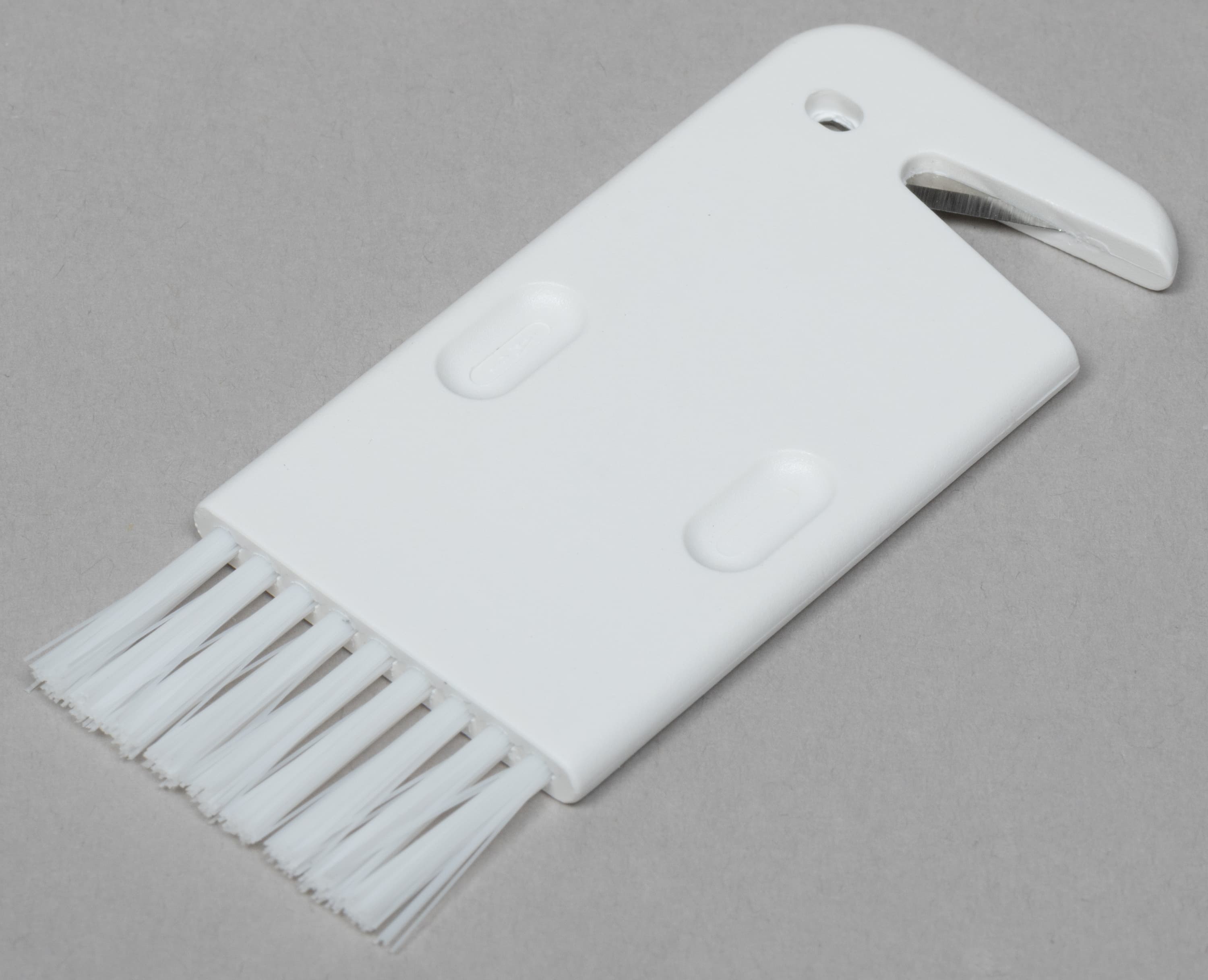 Рядом находится место для хранения ножа-щетки. Он нужен для очистки прибора и срезания ниток и волос со щеток.