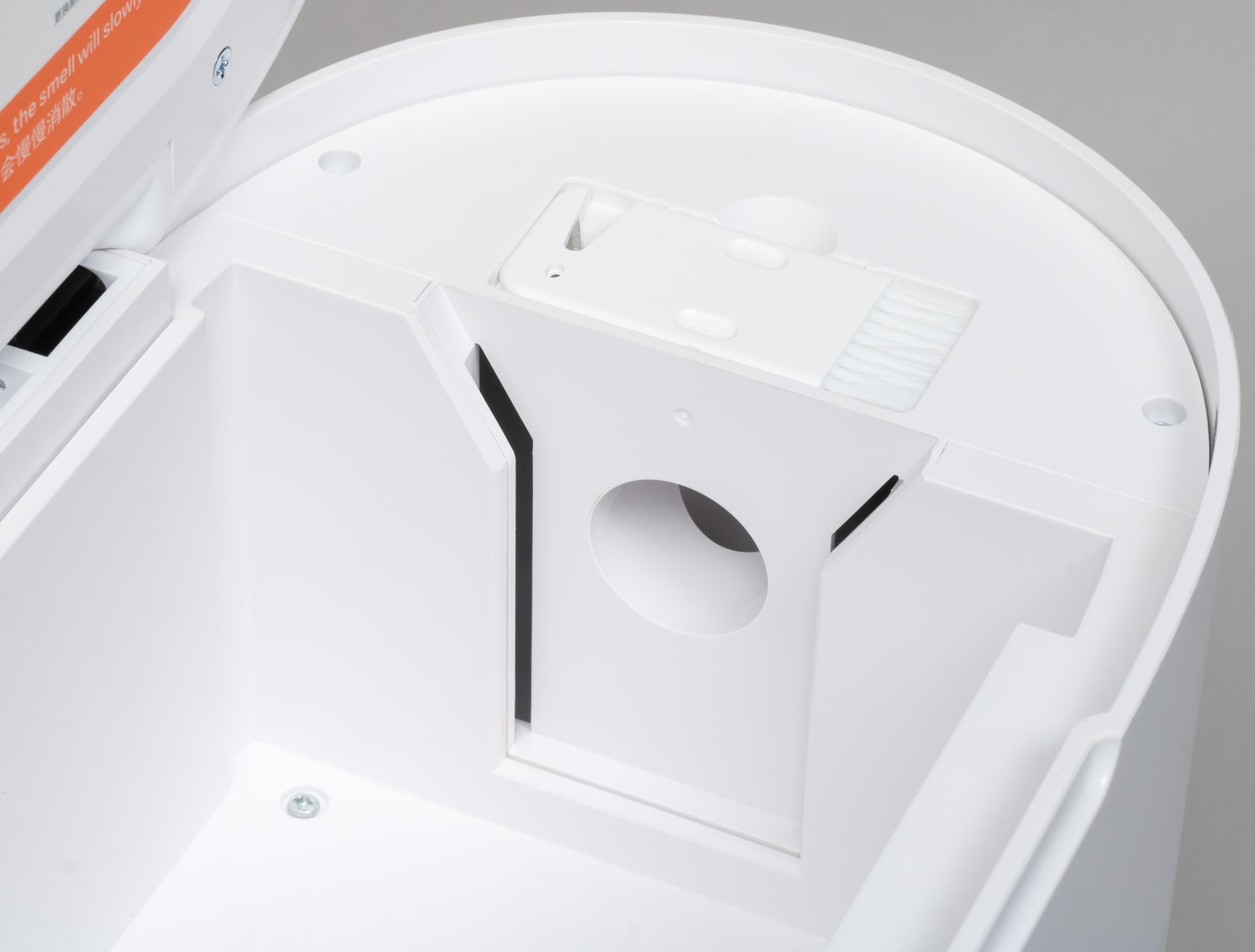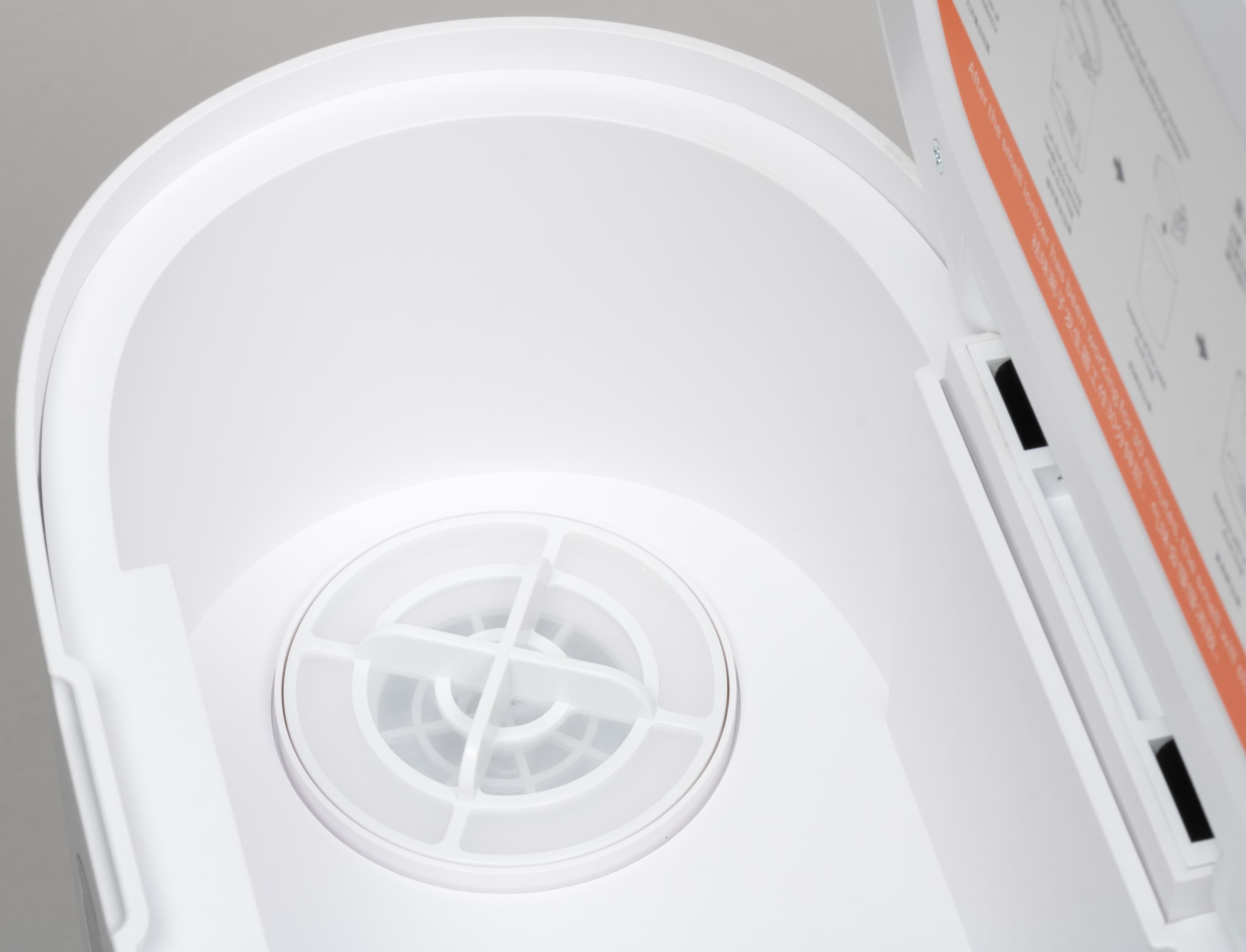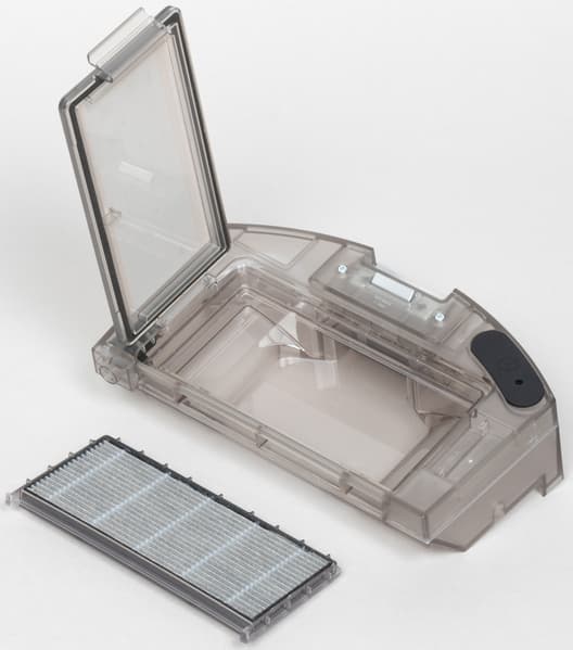 Для очистки контейнера вручную нам предстоит открыть крышку, под которой прячется съемный фильтр.