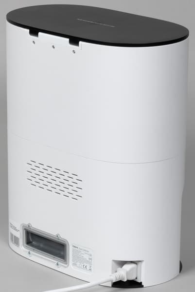 При этом эффективность избавления робота от мусора мы оцениваем как высокую. База уверенно высасывает все содержимое контейнера, оставляя лишь небольшое количество пыли внутри робота.