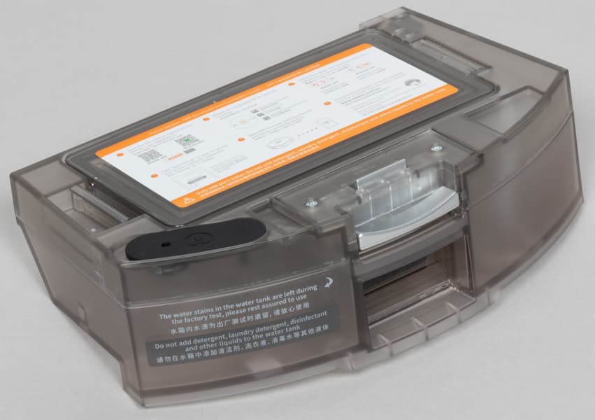 С тыльной стороны мы видим контакты для зарядки устройства и установленный комбинированный контейнер для сухой и влажной уборки.
