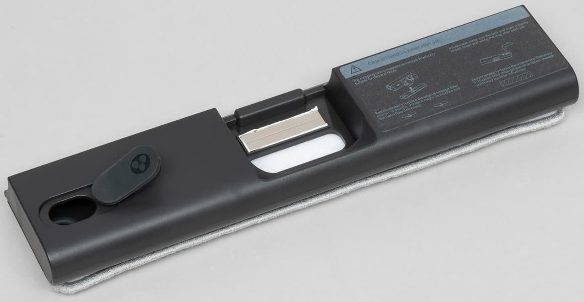Недокументированной, но полезной функцией, обнаруженной нами, явилось наличие сильного магнита на нижней «пятке» напольной насадки. С его помощью мы собрали существенное количество мелкого металлического мусора (в том числе пару игл), который, попадая в мусоросборник, мог бы повредить фильтр или привести к травме при его очистке. Оказалось, что магнит, исходно предназначенный для фиксации устройства для влажной уборки, может быть полезен даже без него.