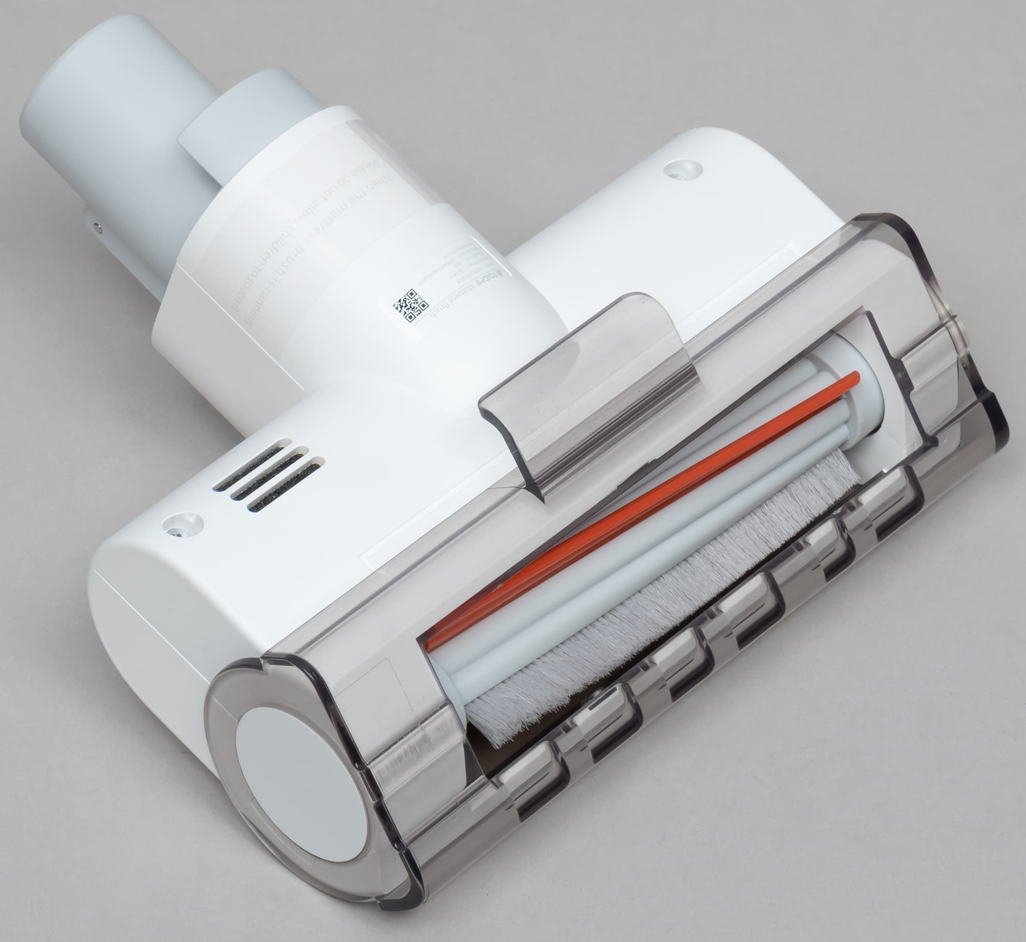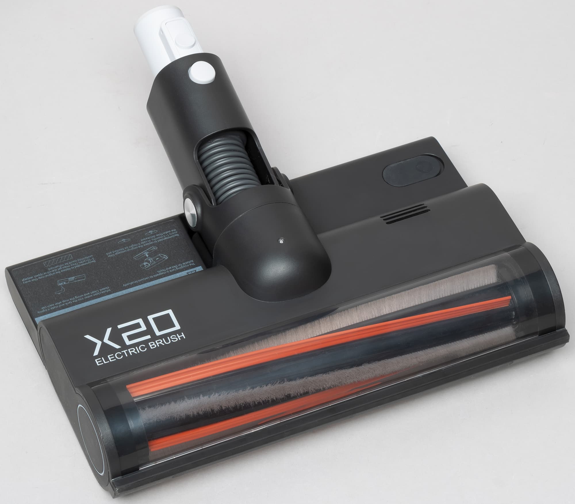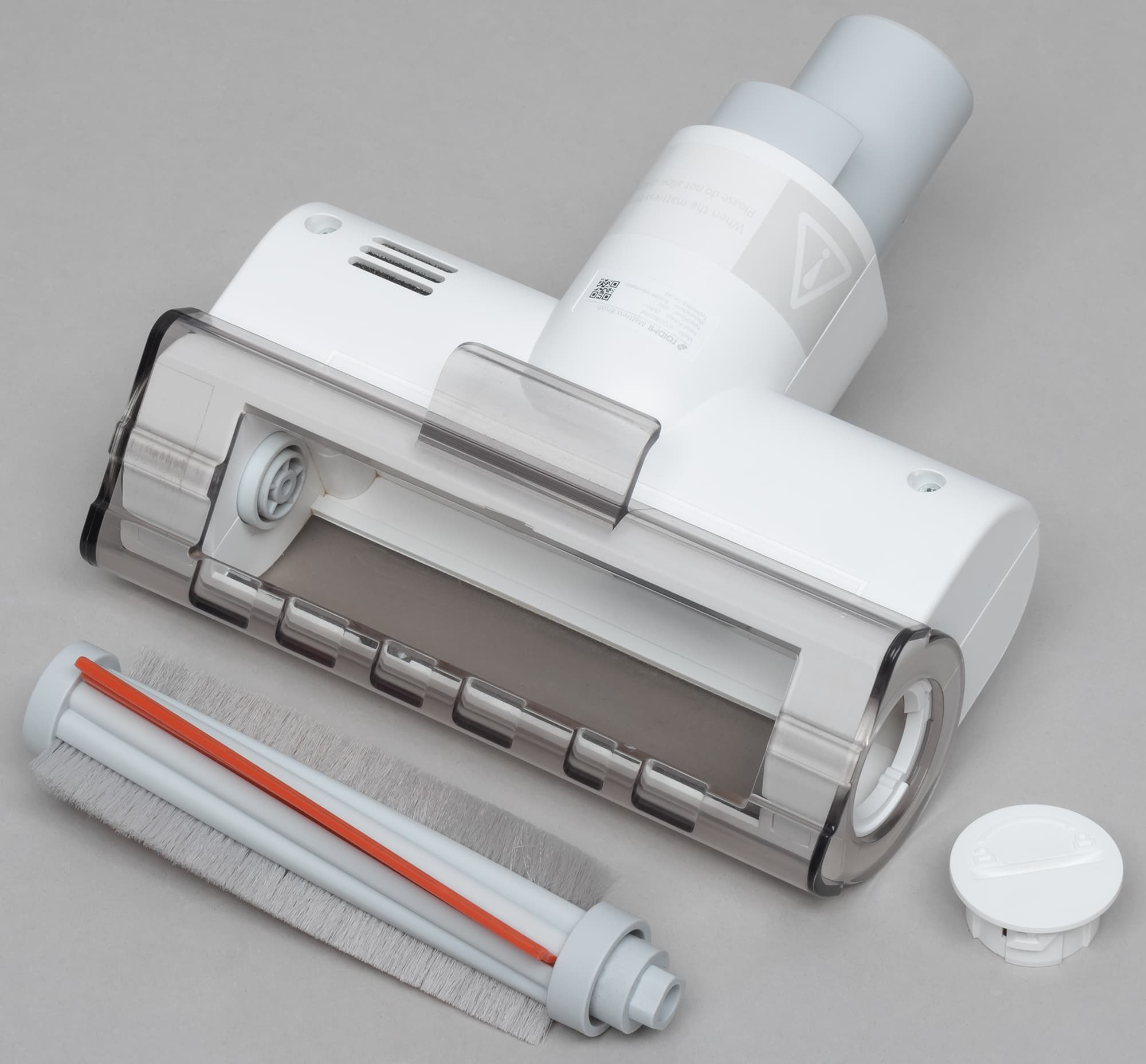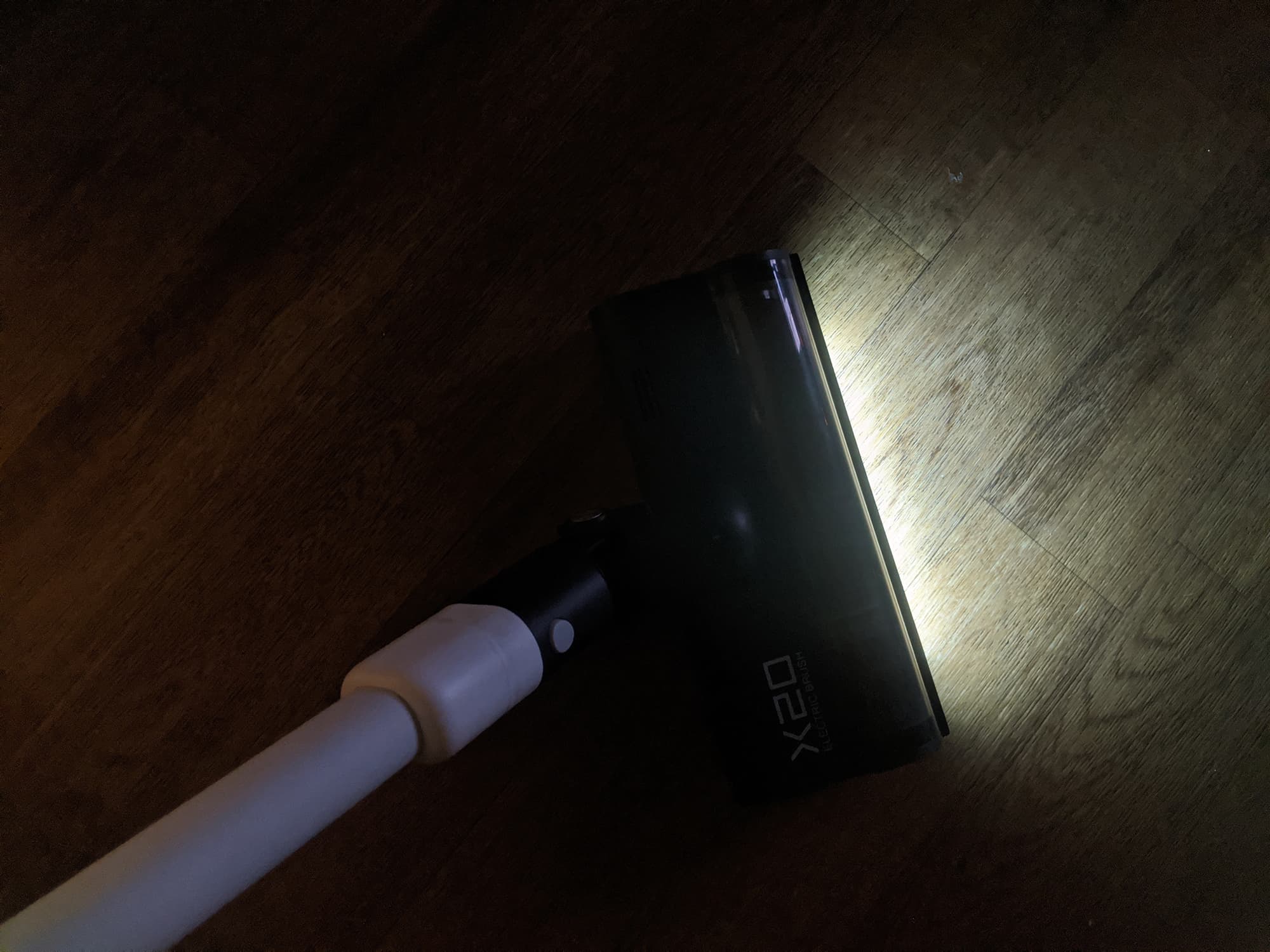 Основной и наиболее часто используемой насадкой вертикального пылесоса является, конечно, насадка для пола. Пылесос Roidmi X20 оборудован сложной насадкой с электроприводом турбощетки, светодиодной подсветкой, датчиком освещенности и защитой от перегрузки при блокировке щетки.