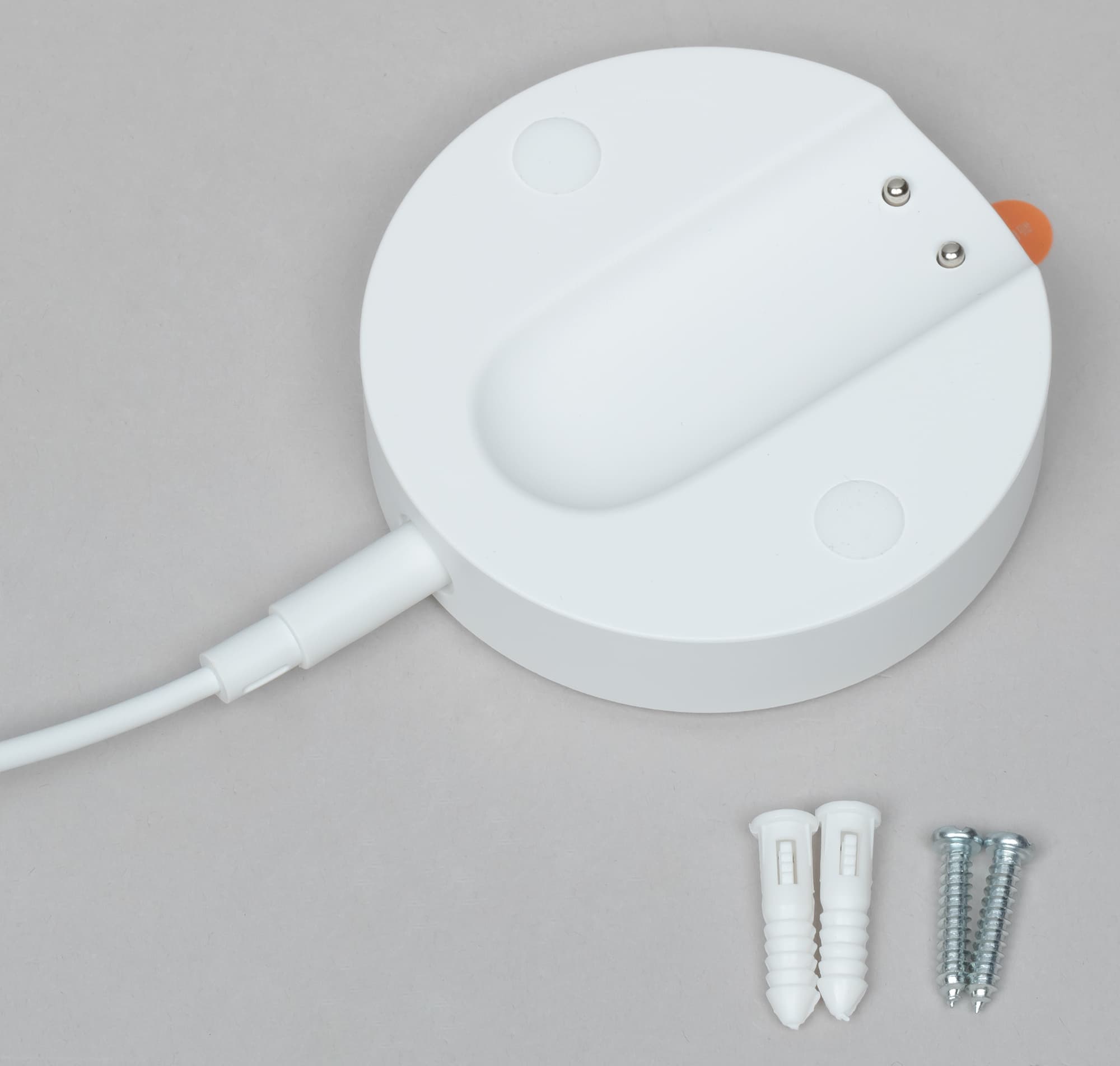 Док-станция может быть закреплена на стене тремя способами, в зависимости от покрытия и желания пользователя: с помощью двустороннего скотча, двумя винтами, которые вместе с нейлоновыми дюбелями идут в комплекте, а также с помощью двух силиконовых присосок (в комплекте две пары — основная и запасная).