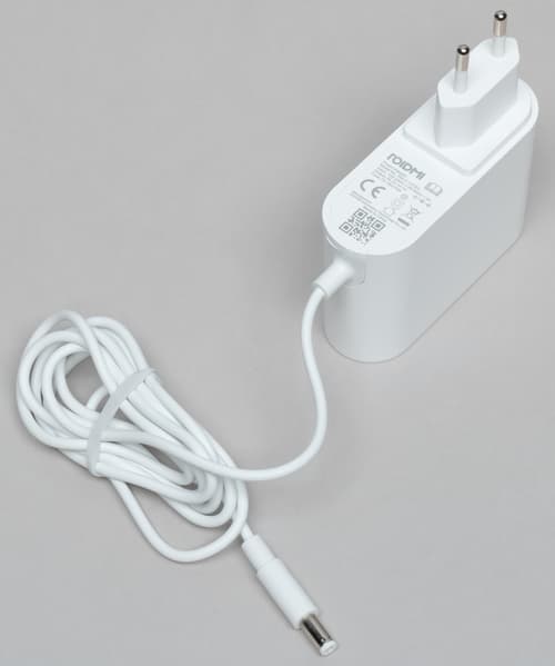 Пылесос комплектуется сетевым адаптером постоянного тока (34,2 В, 1 А) с евро-вилкой, который может подключаться к пылесосу как напрямую, так и через настенную станцию беспроводной зарядки.