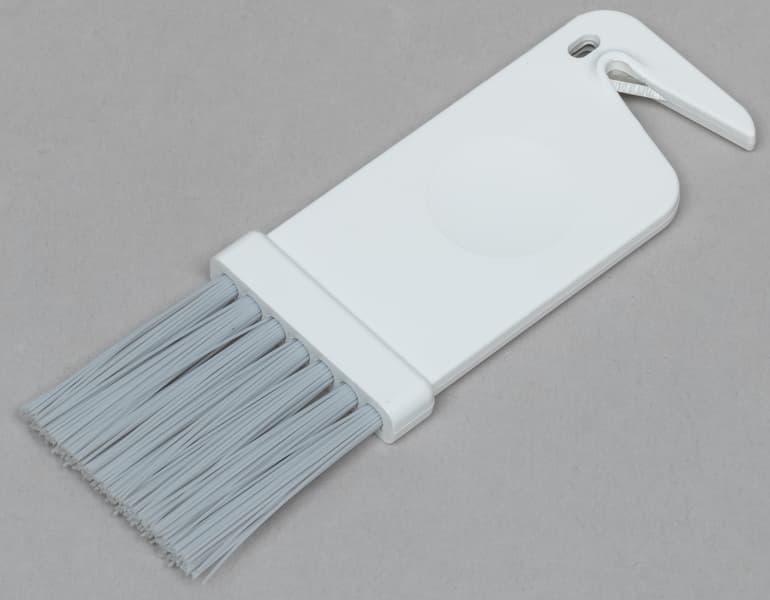 В комплекте с пылесосом идут также щеточка для чистки фильтров, совмещенная с лезвием для снятия с турбощеток намотавшихся на них ниток и длинных волос. Отличный аксессуар: простой, недорогой, но, к сожалению, крайне редко встречающийся в комплектации подобных пылесосов.