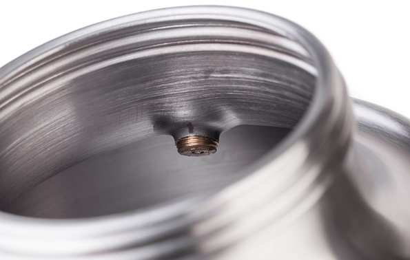 В ходе первого запуска мы обнаружили, что небольшое количество воды проливается сквозь место соединения верхнего и нижнего сосудов. Причина этого очевидна: недостаточно плотно закрученное резьбовое соединение. После того, как мы собрали прибор, приложив чуть большее усилие, проблема исчезла, а вот стрелки, нарисованные на корпусе, перестали совпадать. Мелочь, конечно, но выглядит неаккуратненько.