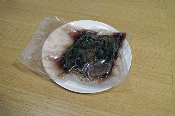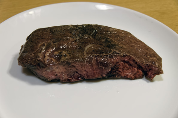 Результат же оказался довольно предсказуемым: да, именно так и должен выглядеть полуфабрикат су-видного стейка.