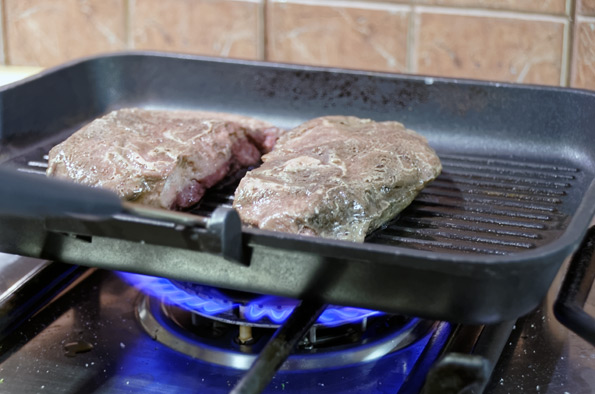 В качестве первого эксперимента мы обжарили стейки, которые провели в термопоте всю ночь.