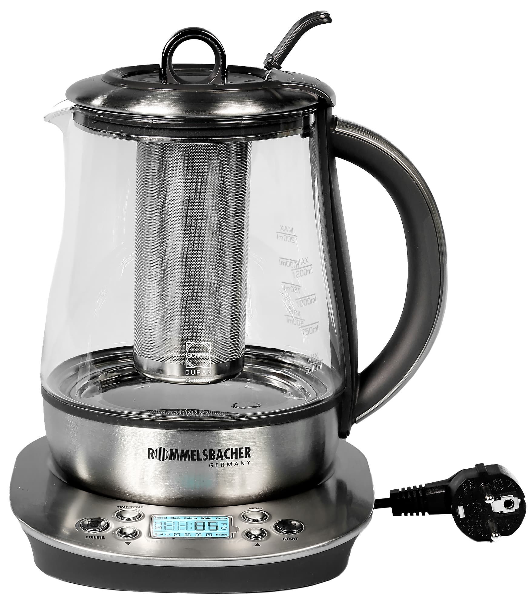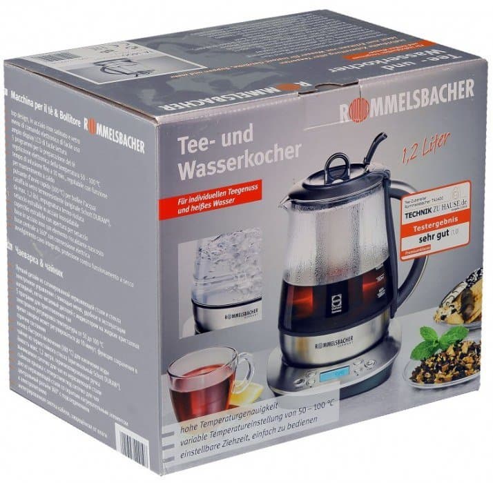 Мы все как-то уже привыкли, что электрический чайник — это такое универсальное устройство для получения кипятка (самые простые модели) или воды определенной температуры (модели посложнее). Компания Rommelsbacher решила напомнить нам, что «чайник» непосредственно связан с «чаем» — и выпустила прибор, основной смысл которого состоит именно в приготовлении этого напитка.